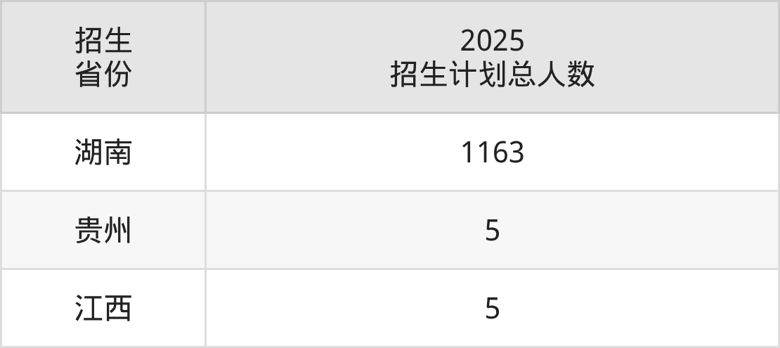 2025年株洲师范高等专科学校面向全国3个省市开展专科招生;招生专业共9个,招生人数共1173人。2025年在湖南省招生计划总人数是1163人,其中,株洲师范高等专科学校在湖南省招生人数最多的是婴幼儿托育服务与管理。株洲师范高等专科学校在各省具体招生人数情况如下表。