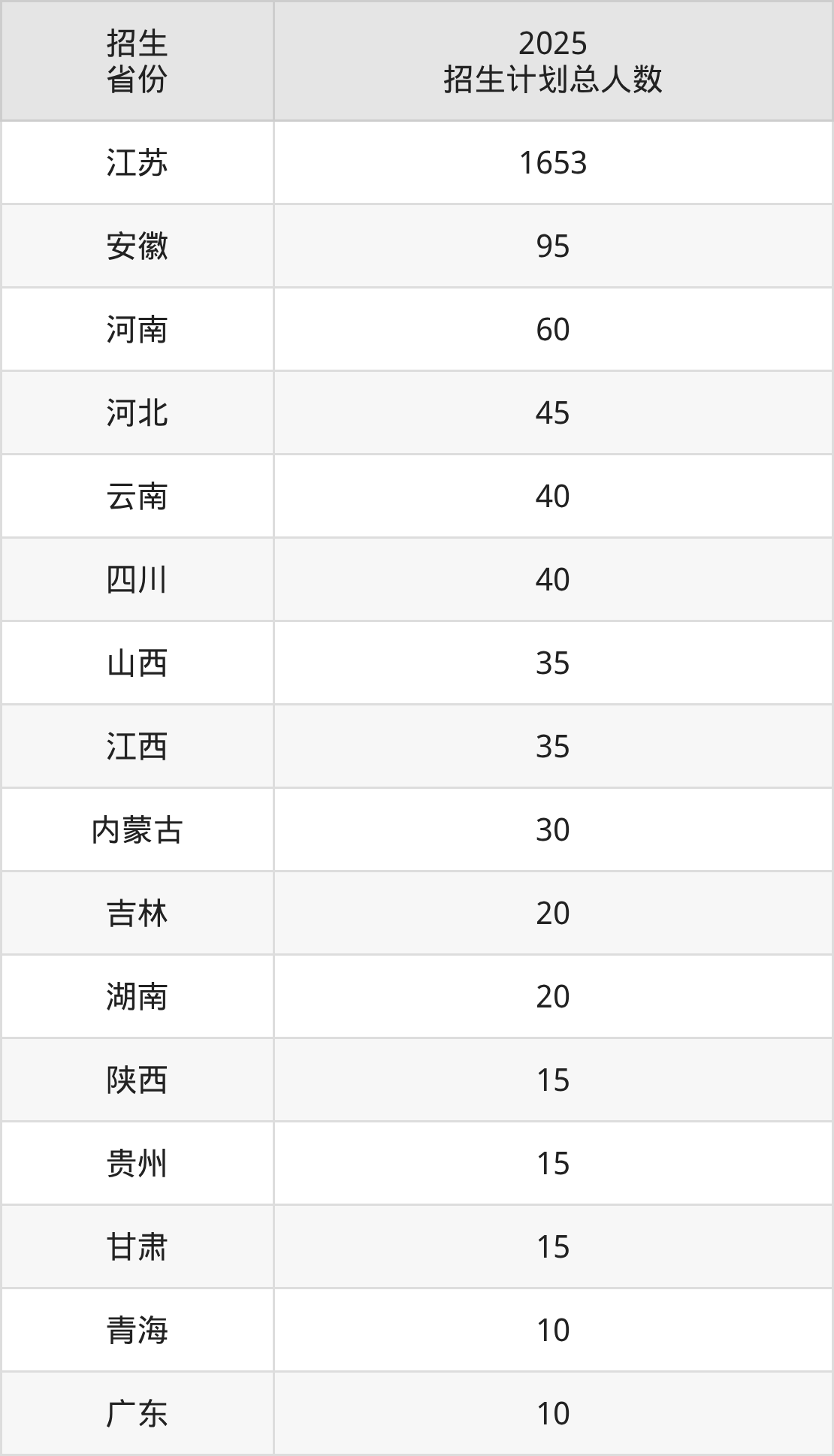 2025年江苏财经职业技术学院面向全国17个省市开展专科招生;招生专业共31个,招生人数共2143人。2025年在江苏省招生计划总人数是1653人,其中,江苏财经职业技术学院在江苏省招生人数最多的是大数据与会计。江苏财经职业技术学院在各省具体招生人数情况如下表。