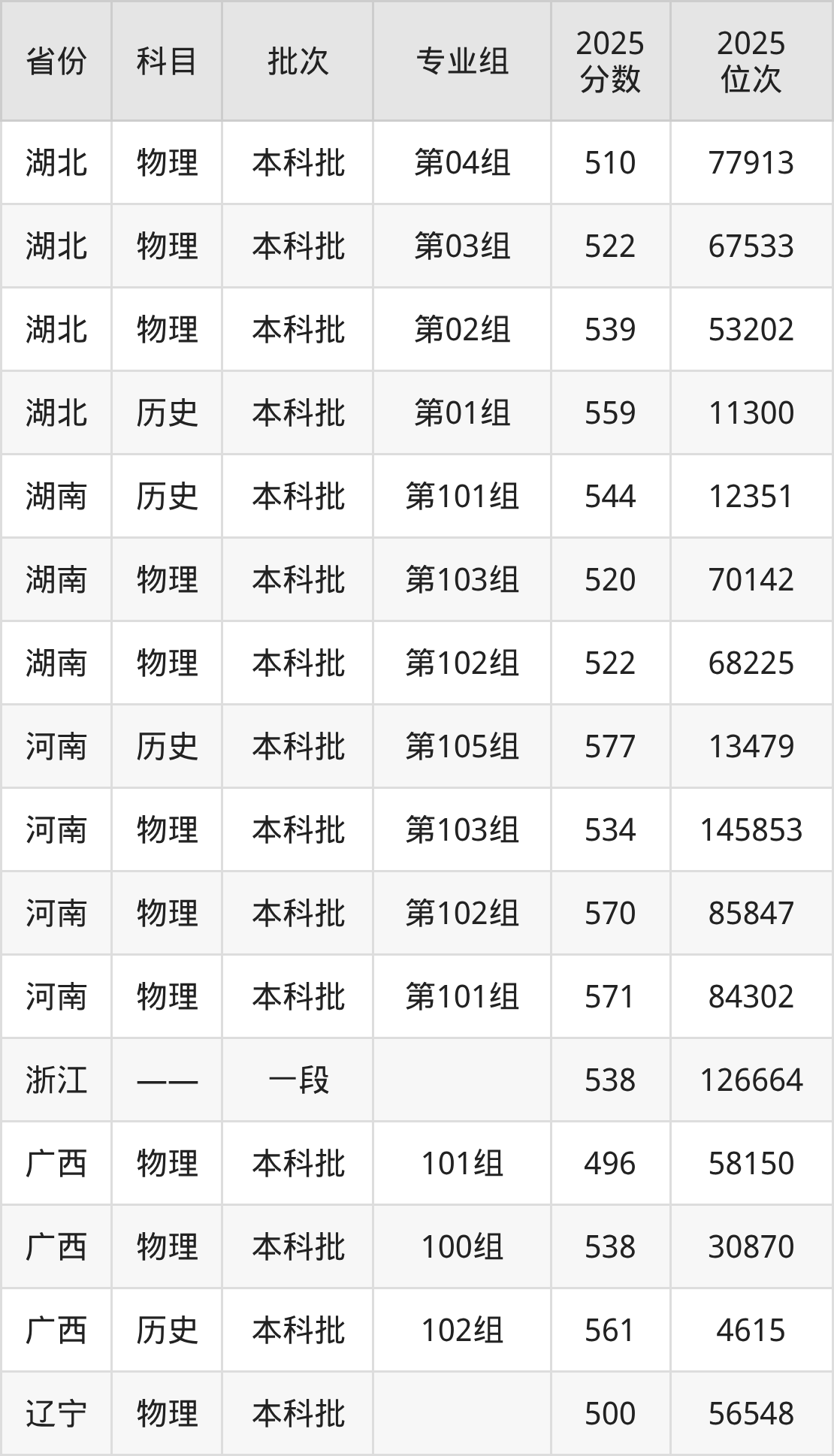 普通类本科物理类最低537分,本科历史类最低574分