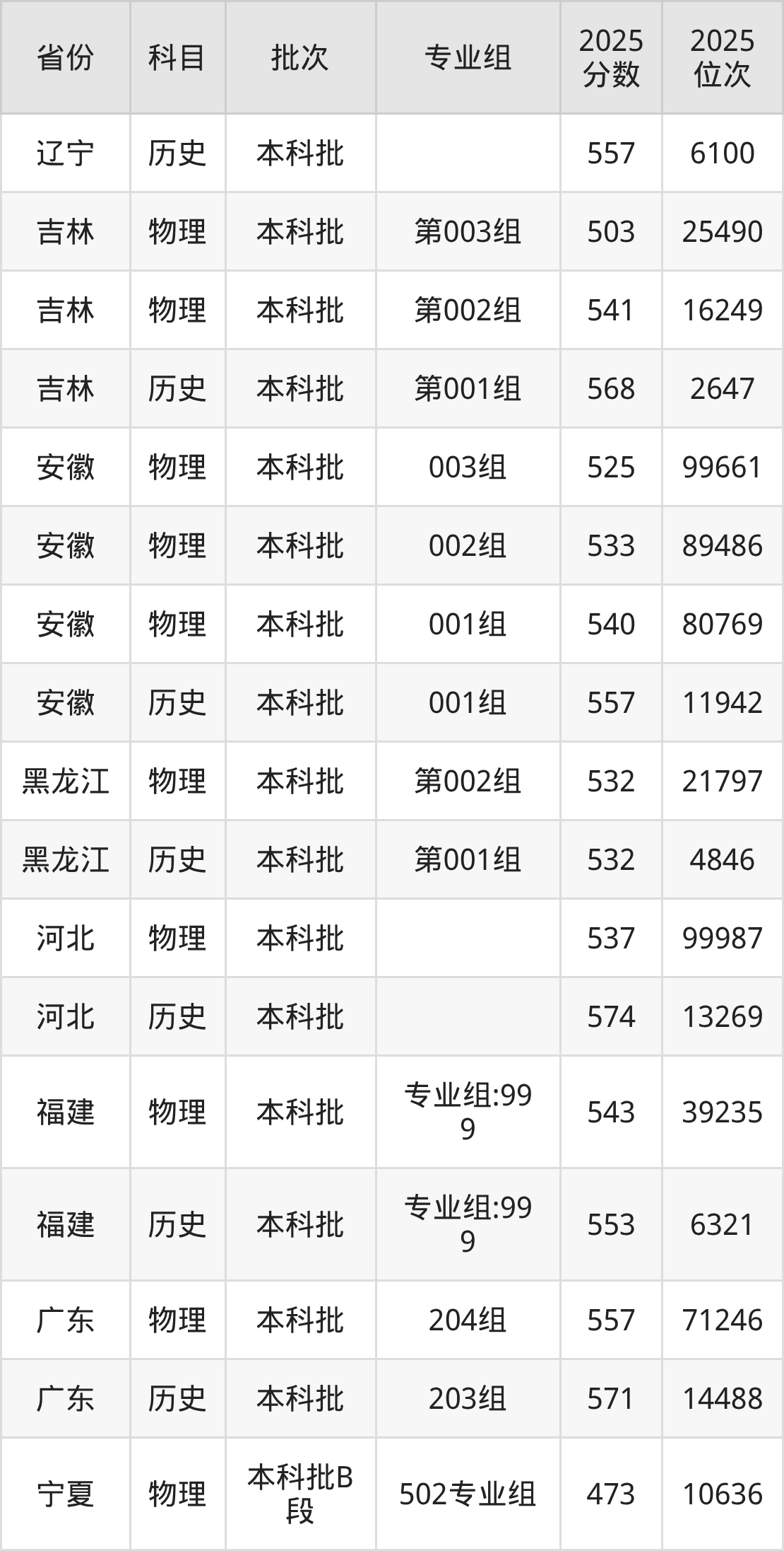 普通类本科物理类最低557分,本科历史类最低571分