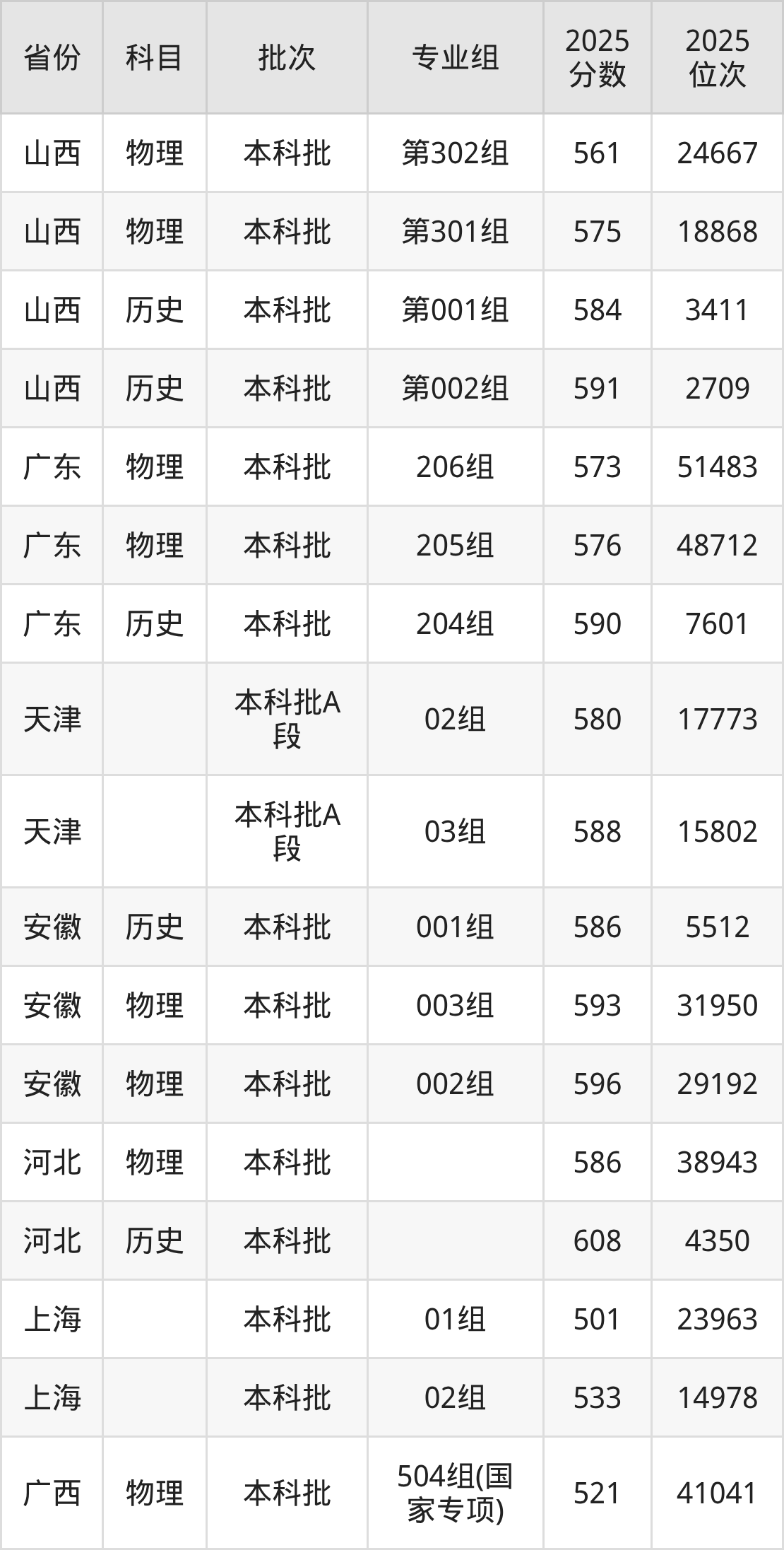 2025年投档录取最低分为564分,录取最低位次为6187名。