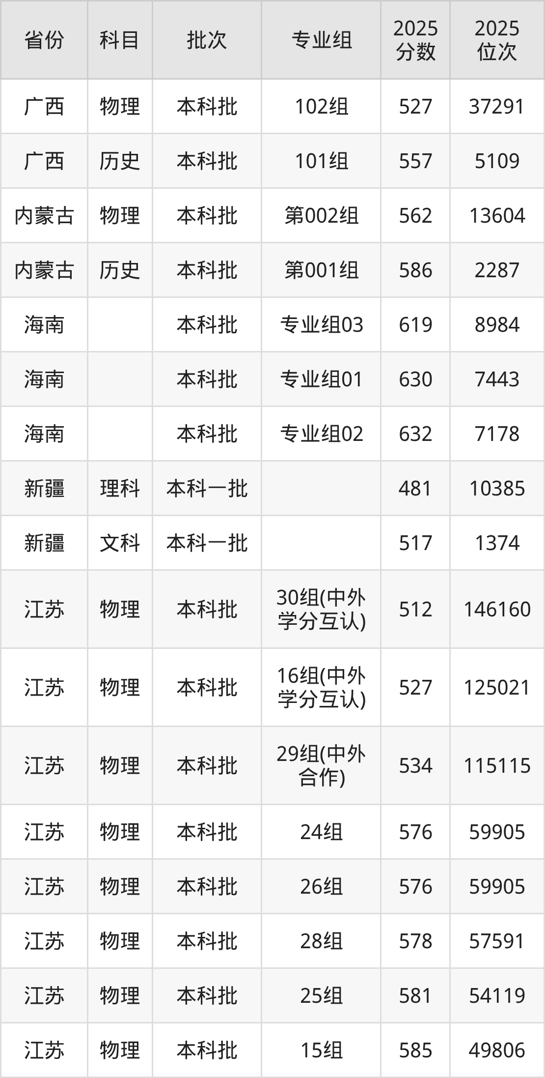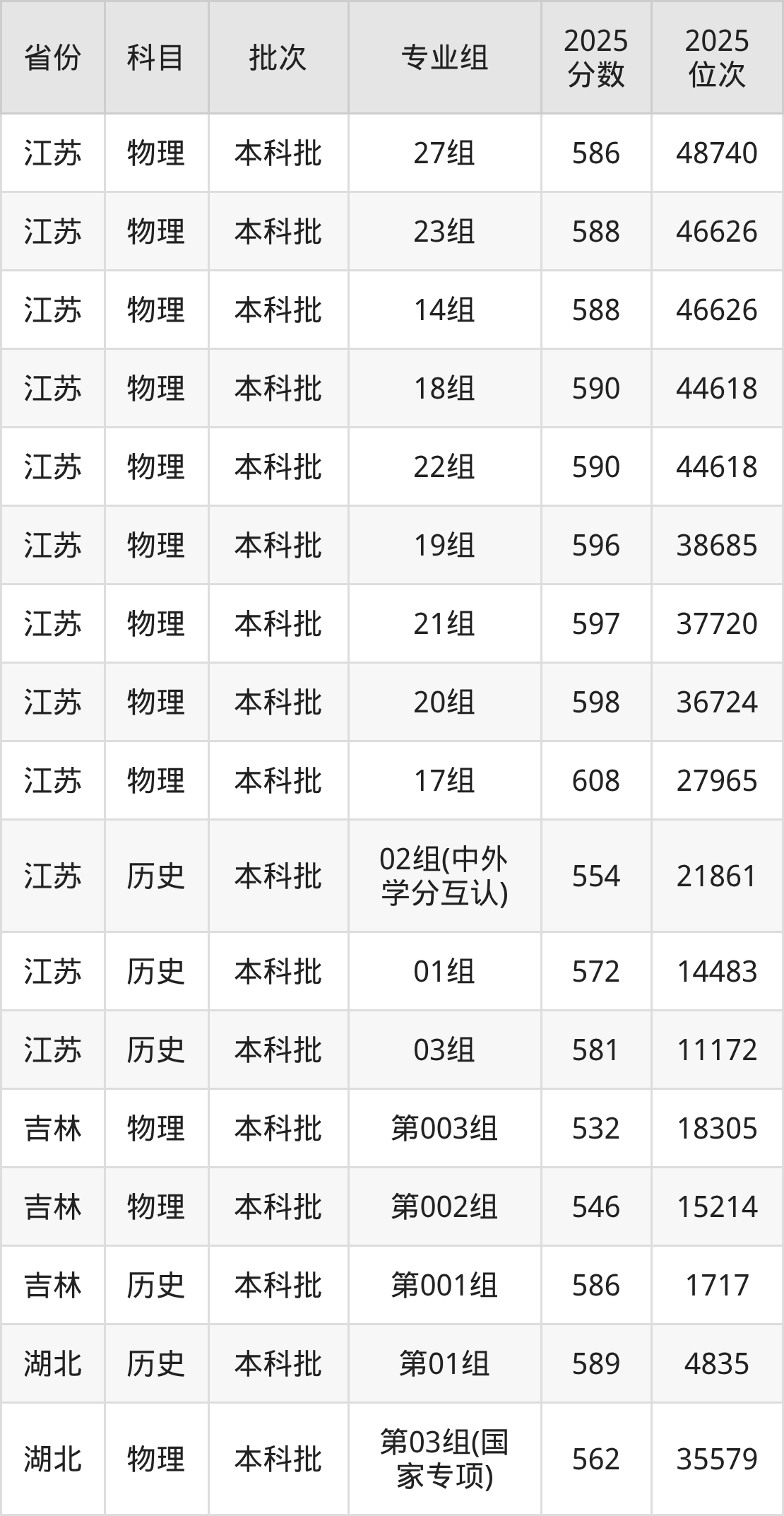下面是2025年江苏大学全国录取分数线一览表,请查阅。
