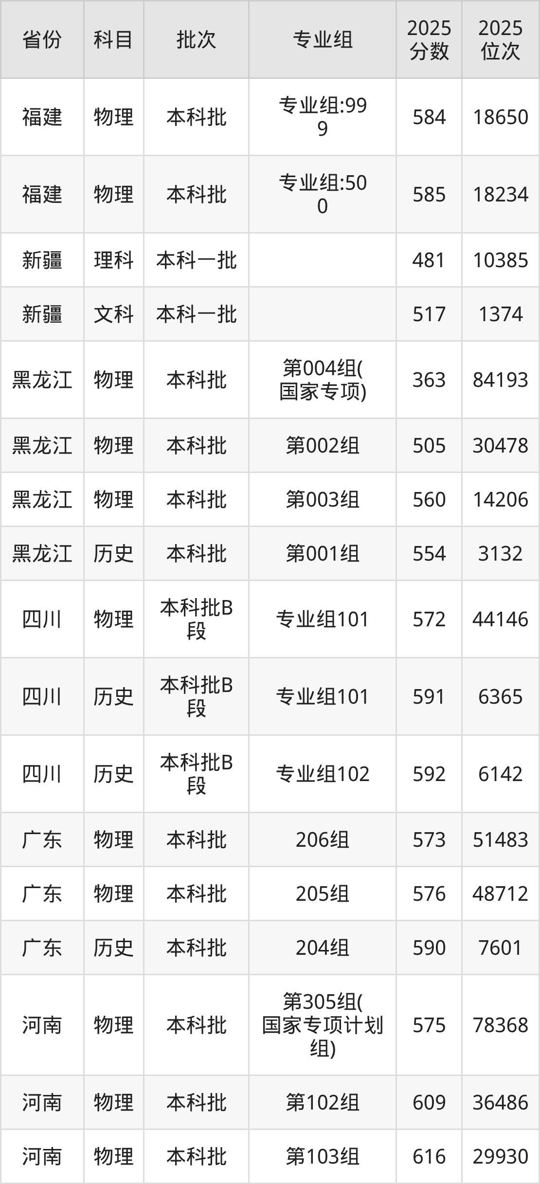 普通类本科物理类最低572分,本科历史类最低591分