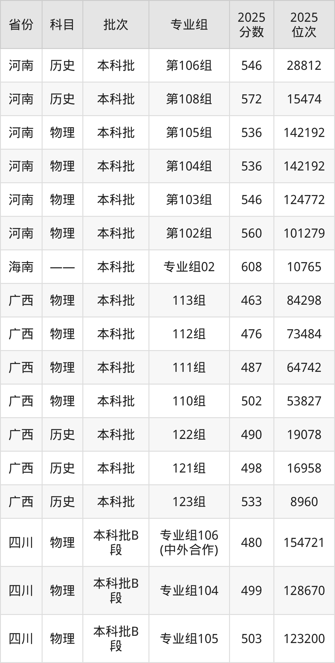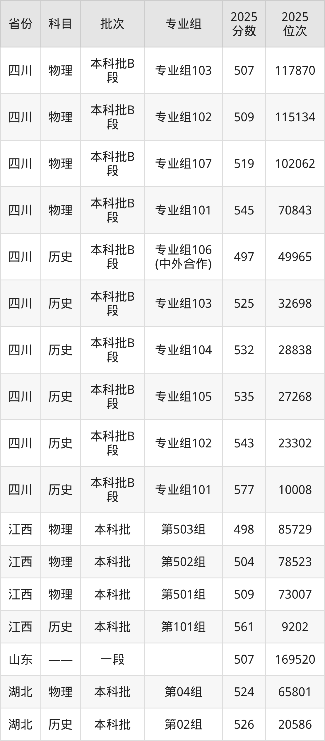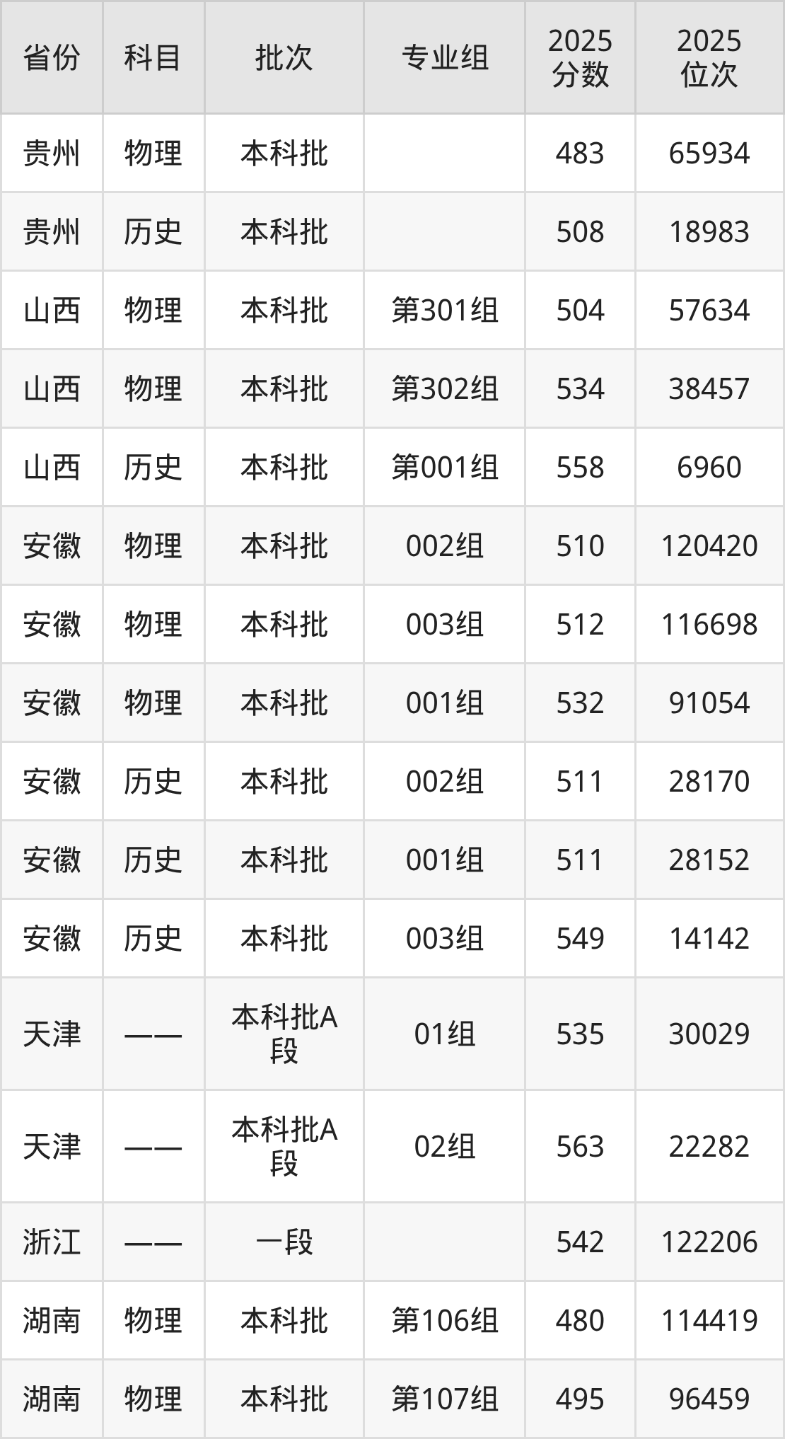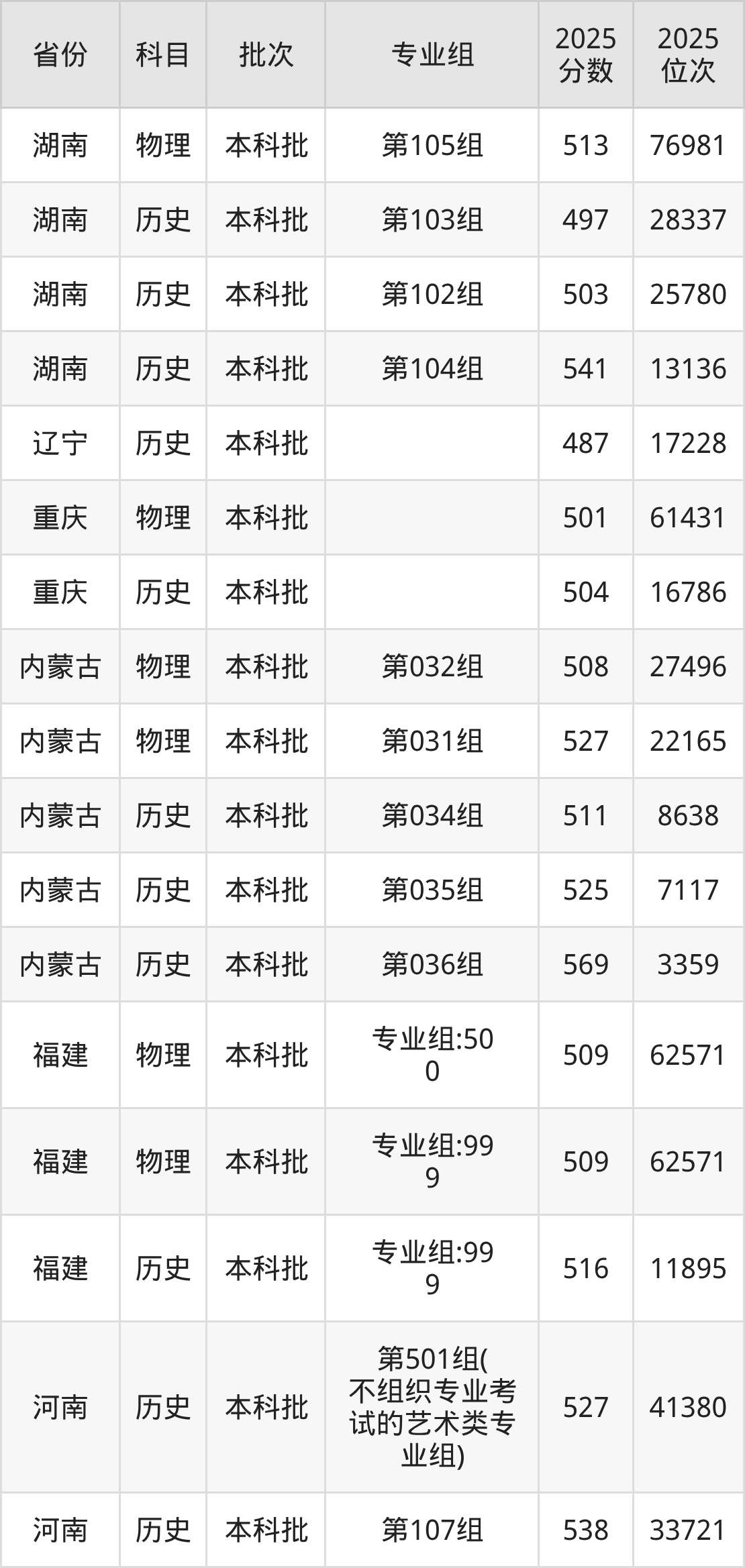 2025年投档录取最低分为543分,录取最低位次为25909名。