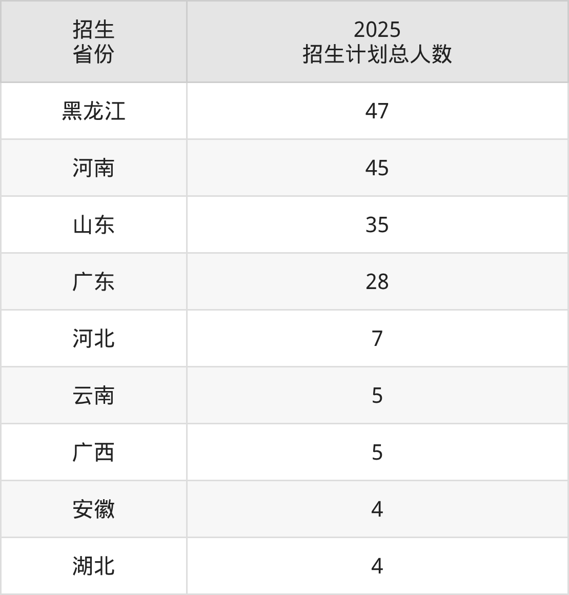 2025年哈尔滨体育学院面向全国9个省市开展本科招生;招生专业共5个,招生人数共180人。