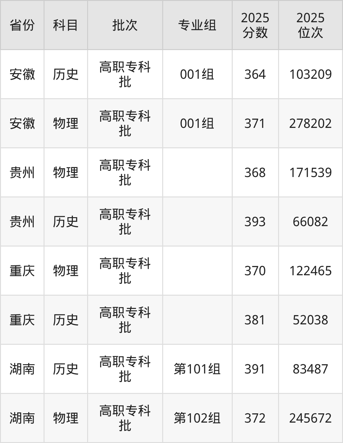重庆青年职业技术学院001组:2025年投档录取最低分为371分,录取最低位次为278202名。