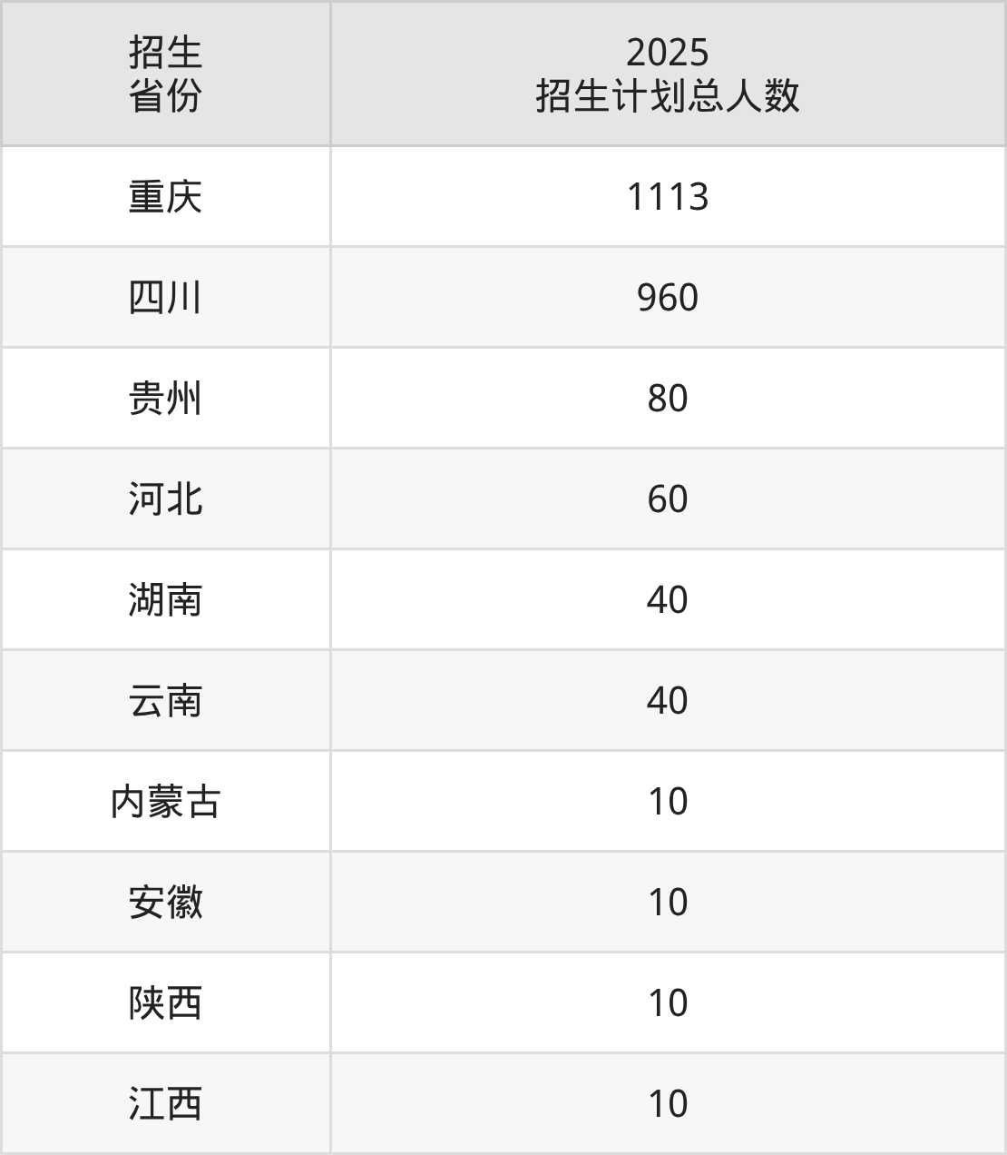 2025年重庆青年职业技术学院面向全国10个省市开展专科招生;招生专业共34个,招生人数共2333人。