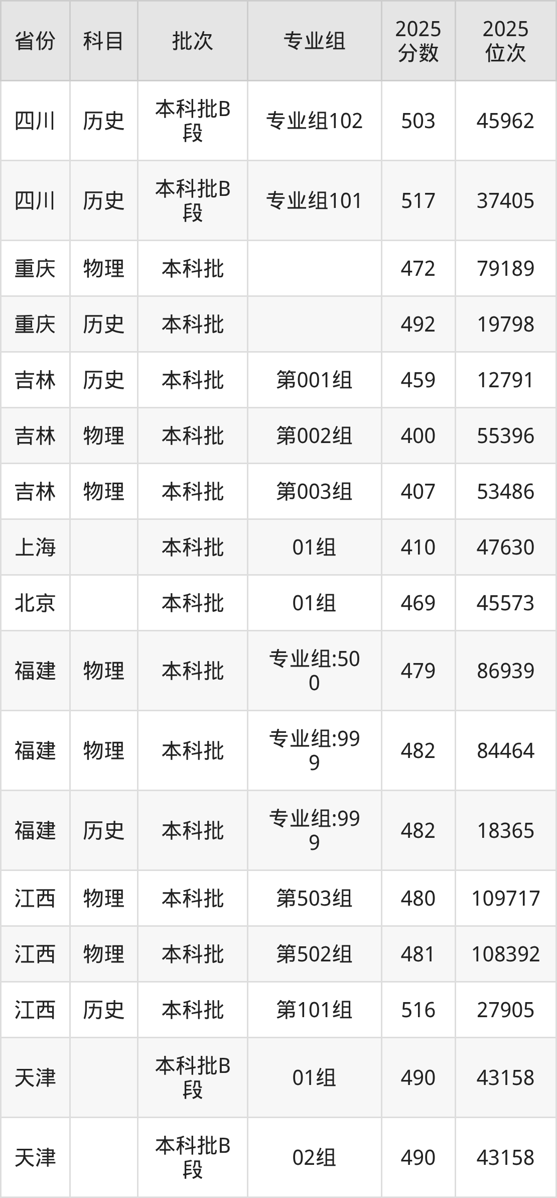 2025年投档录取最低分为377分,录取最低位次为9795名。