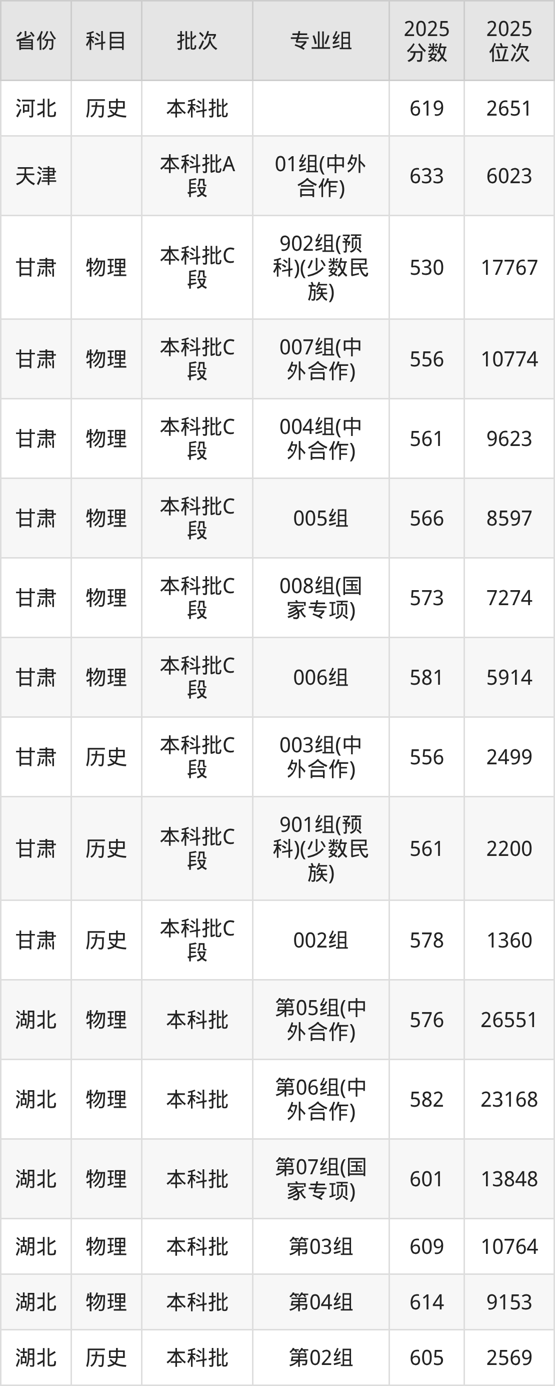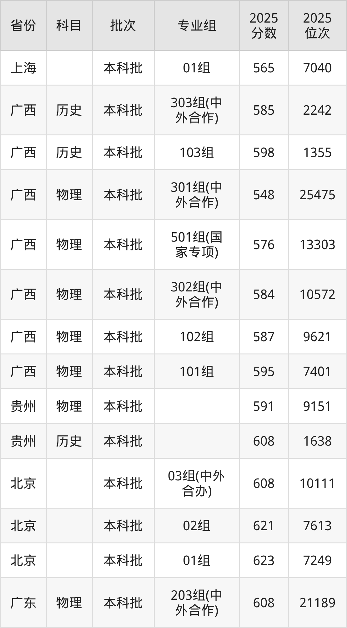 上海大学301组(中外合作):2025年投档录取最低分为548分,录取最低位次为25475名。