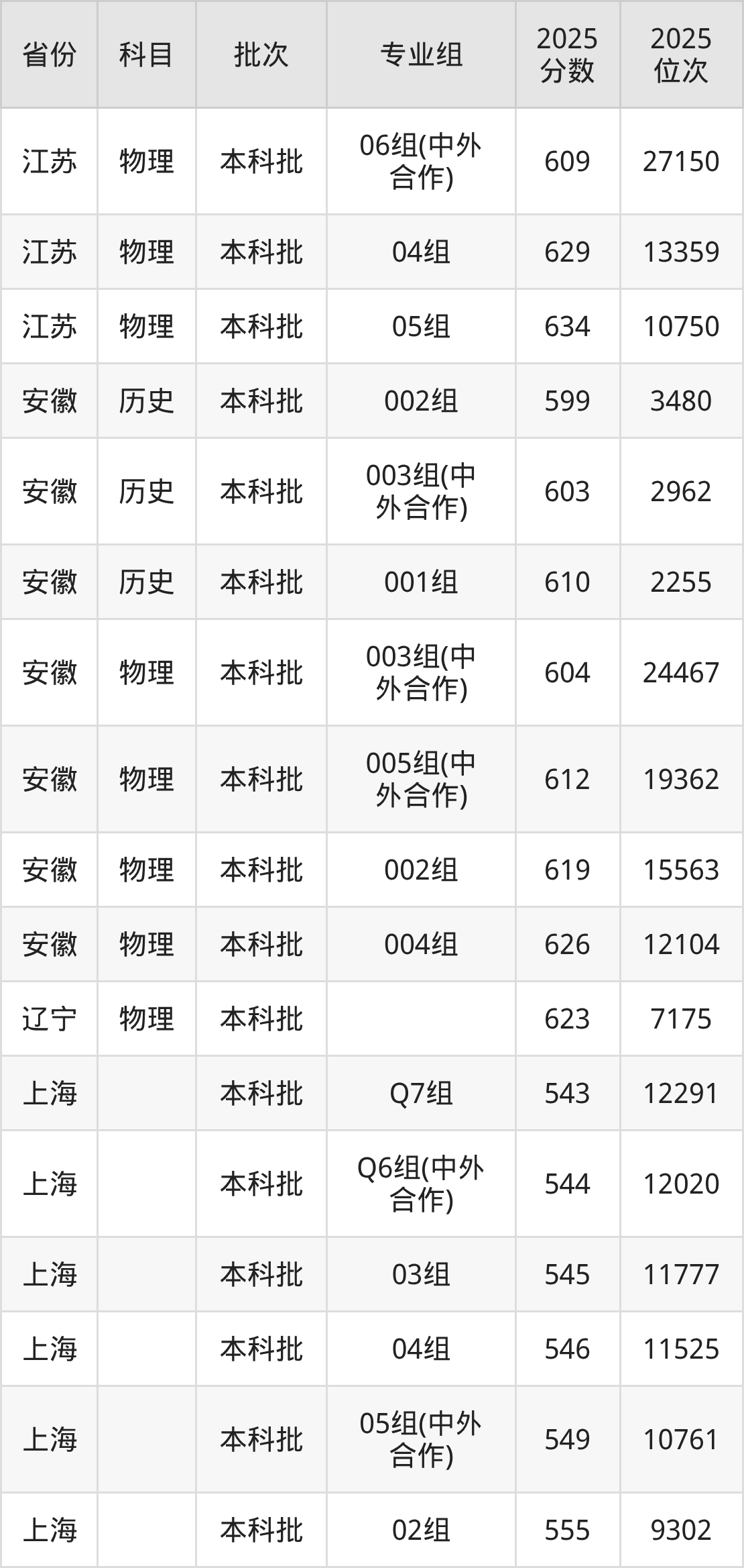 上海大学(05)(中外合作办学):2025年投档录取最低分为549分。