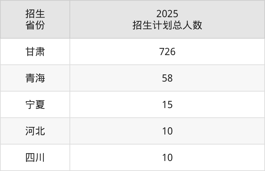 2025年甘肃农业职业技术学院面向全国5个省市开展专科招生;招生专业共37个,招生人数共819人。2025年在甘肃省招生计划总人数是726人,其中,甘肃农业职业技术学院在甘肃省招生人数最多的是动物医学。甘肃农业职业技术学院在各省具体招生人数情况如下表。