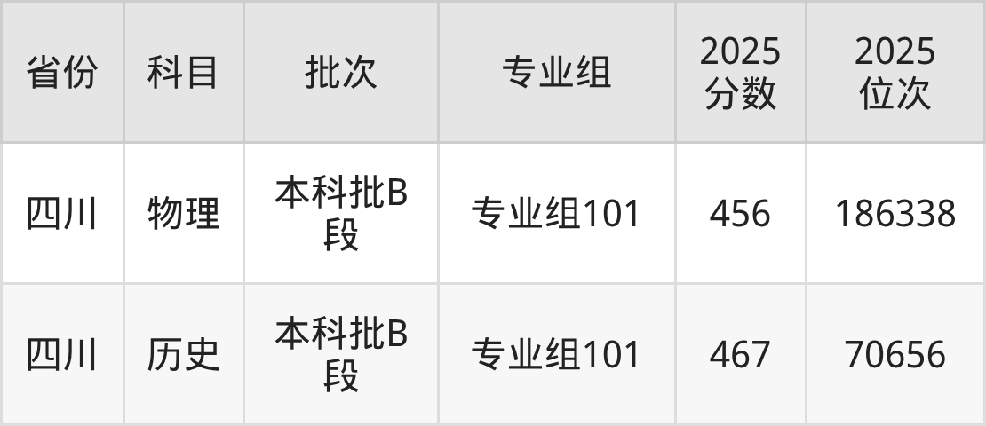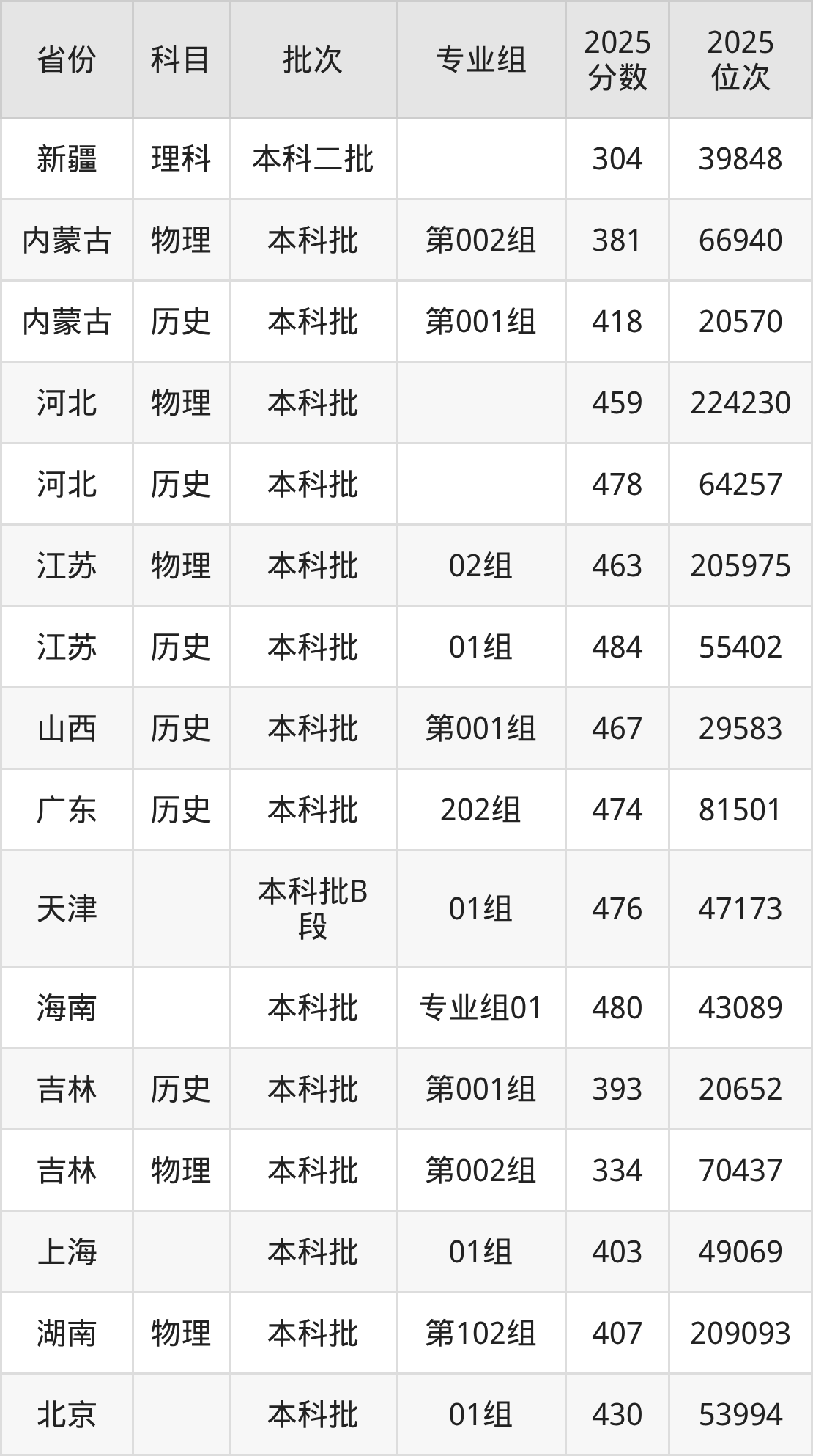 2025年在本科物理类进行招生,各专业组分数线详情如下: