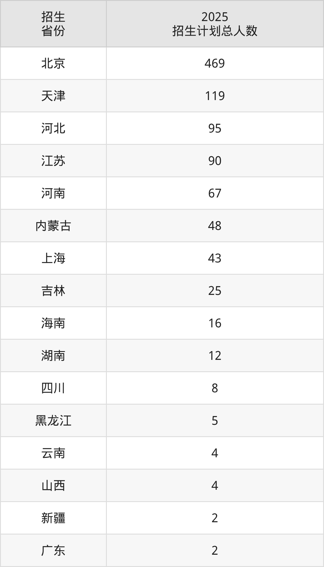 2025年北京第二外国语学院中瑞酒店管理学院面向全国16个省市开展本科招生;招生专业共6个,招生人数共1009人。2025年在北京市招生计划总人数是469人,其中,北京第二外国语学院中瑞酒店管理学院在北京市招生人数最多的是财务管理。北京第二外国语学院中瑞酒店管理学院在各省具体招生人数情况如下表。