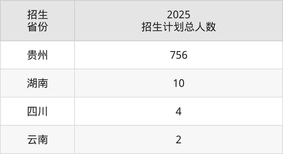 2025年贵州建设职业技术学院面向全国4个省市开展专科招生;招生专业共22个,招生人数共772人。2025年在贵州省招生计划总人数是756人,其中,贵州建设职业技术学院在贵州省招生人数最多的是机电一体化技术。贵州建设职业技术学院在各省具体招生人数情况如下表。