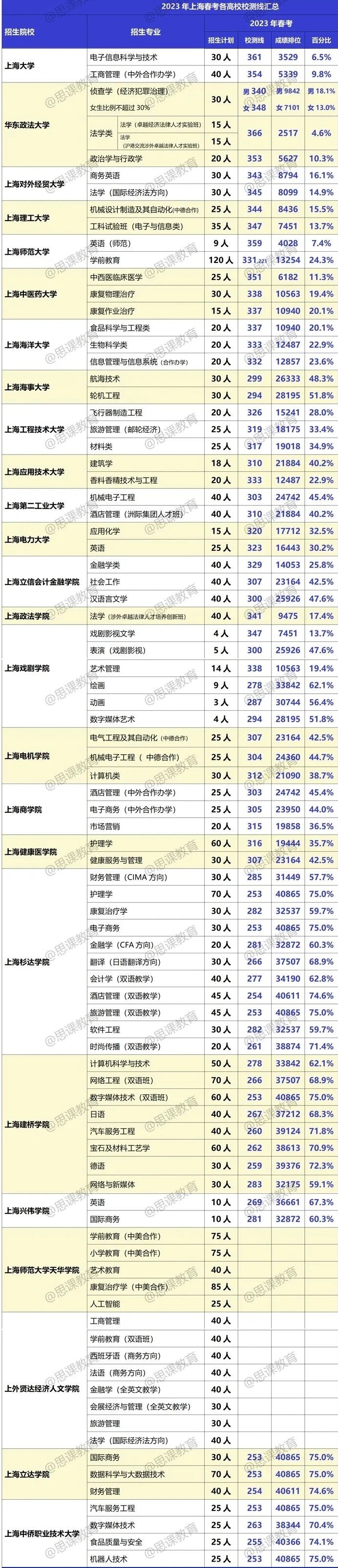 重磅!2023年上海春考各校录取分数线已经公布,那么上海春考校测分数线是多少呢?本期文章老师为大家整理上海春考25所学校分数线汇总,并附上各校录取排位情况,想了解2023年上海春考入围分数线的考生可查阅。