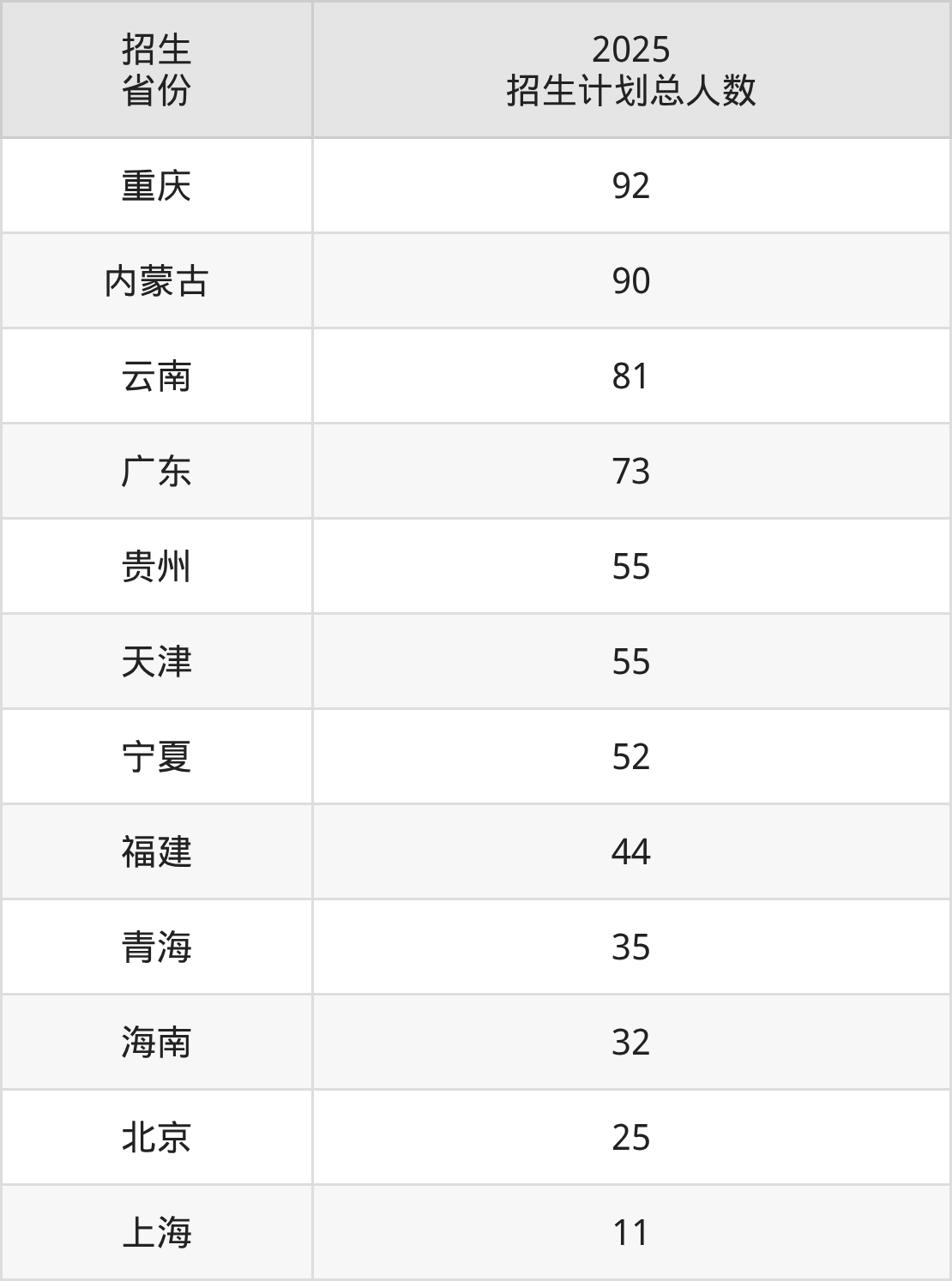 2025年中国石油大学(华东)面向全国28个省市开展本科招生;招生专业共45个,招生人数共3305人。中国石油大学(华东)在各省具体招生人数情况如下表。