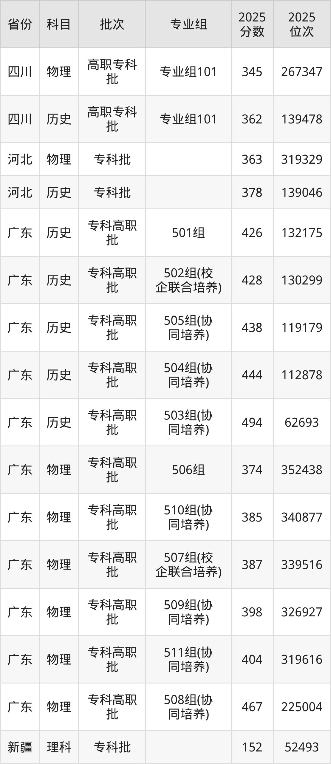 广东省外语艺术职业学院507组(校企联合培养):2025年投档录取最低分为387分,录取最低位次为339516名。