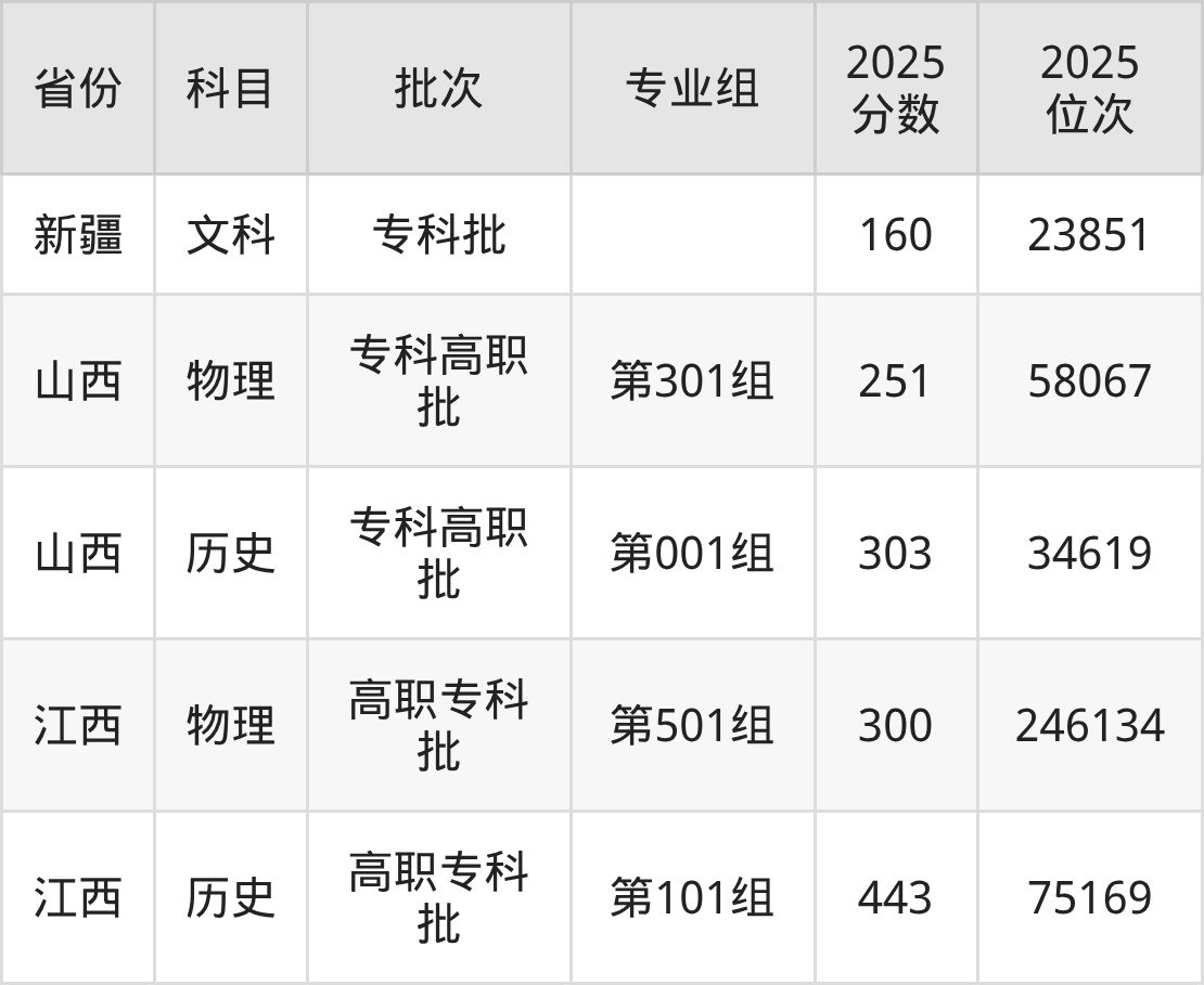 2025年投档录取最低分为160分,录取最低位次为23851名。