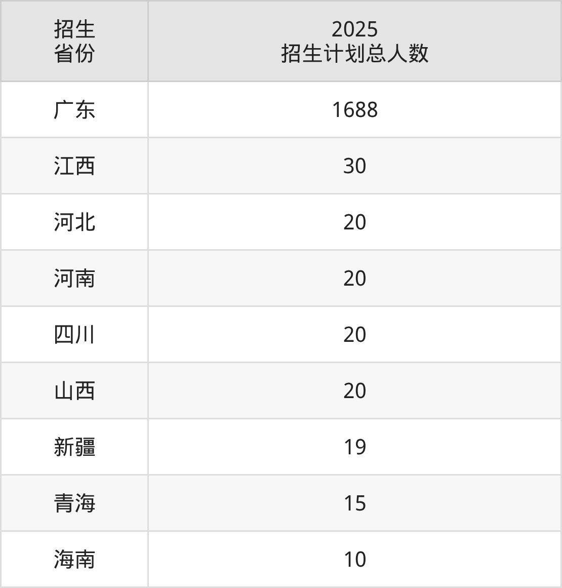 2025年广东省外语艺术职业学院面向全国9个省市开展专科招生;招生专业共35个,招生人数共1842人。2025年在广东省招生计划总人数是1688人,其中,广东省外语艺术职业学院在广东省招生人数最多的是小学英语教育。广东省外语艺术职业学院在各省具体招生人数情况如下表。