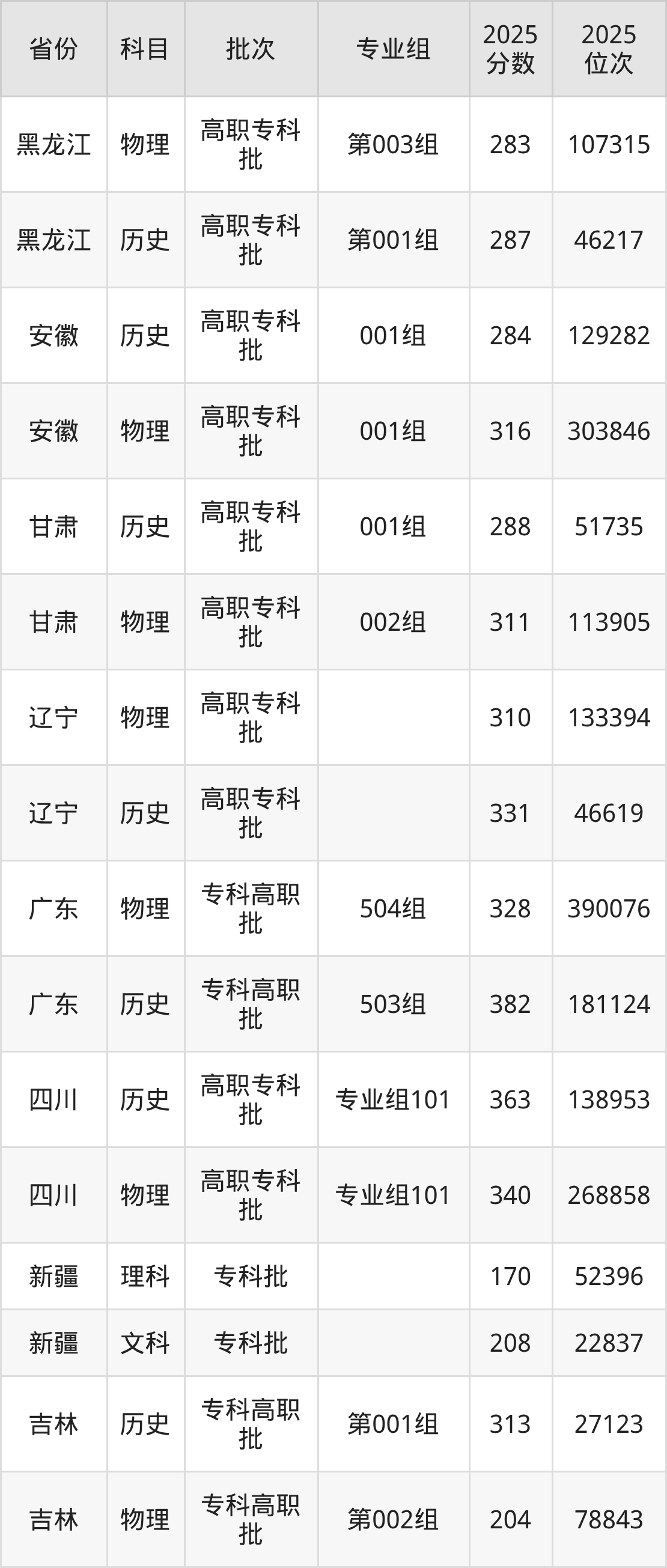 黑龙江农业职业技术学院第003组:2025年投档录取最低分为283分,录取最低位次为107315名。