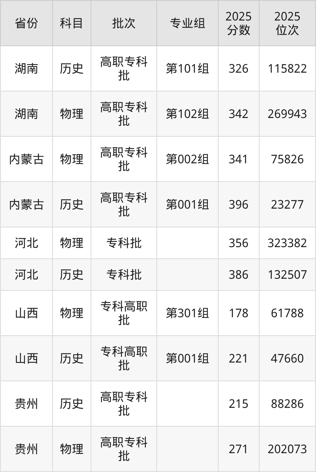 黑龙江农业职业技术学院第301组:2025年投档录取最低分为178分,录取最低位次为61788名。