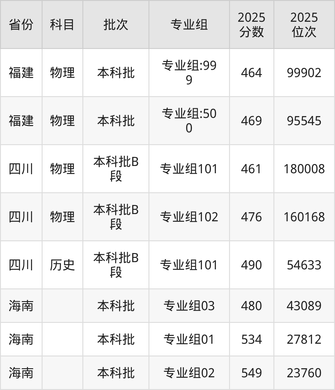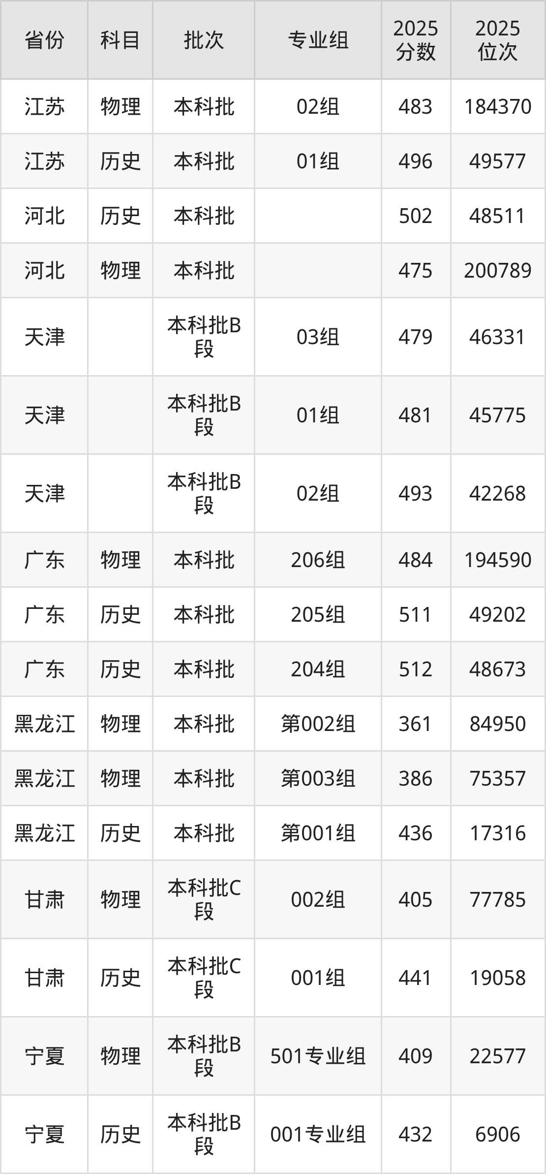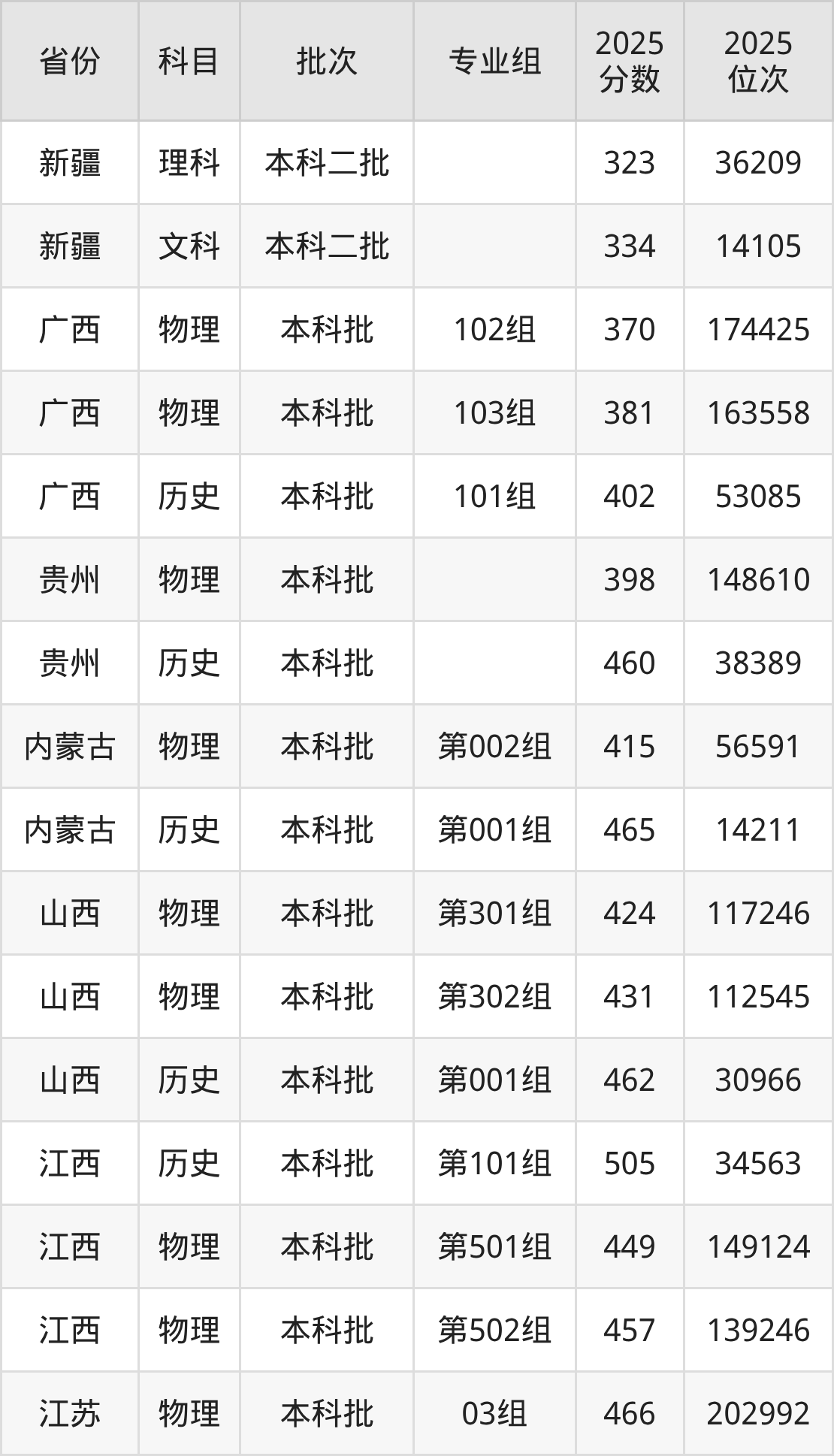 2025年投档录取最低分为460分,录取最低位次为38389名。