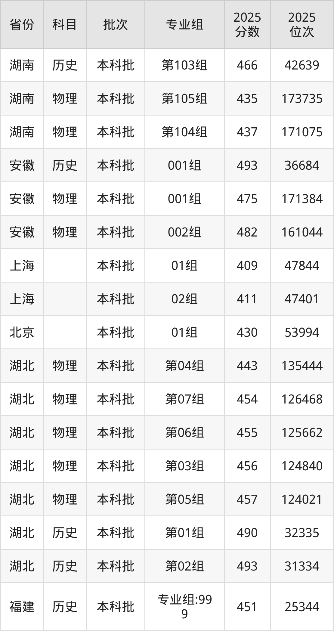 文华学院第001组:2025年投档录取最低分为465分,录取最低位次为14211名。
