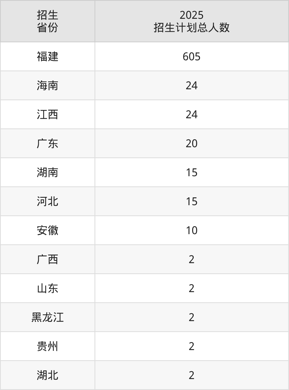 2025年漳州理工职业学院面向全国12个省市开展专科招生;招生专业共30个,招生人数共723人。2025年在福建省招生计划总人数是605人,其中,漳州理工职业学院在福建省招生人数最多的是机电一体化技术。漳州理工职业学院在各省具体招生人数情况如下表。