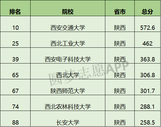 1、西安交通大学:全国排名第10名,总得分572.6。