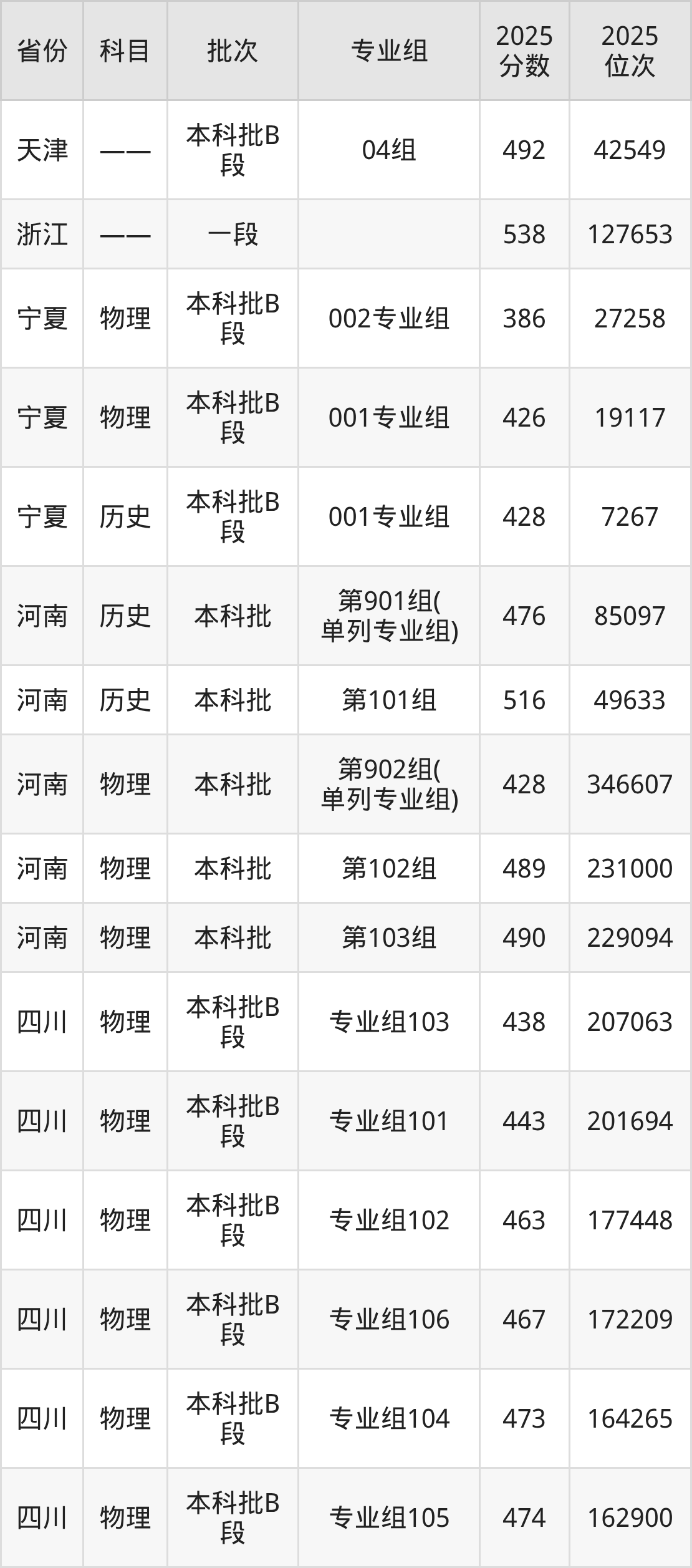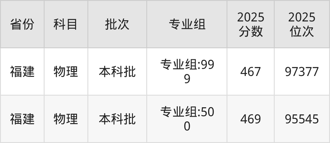 2025年在本科物理类进行招生,各专业组分数线详情如下: