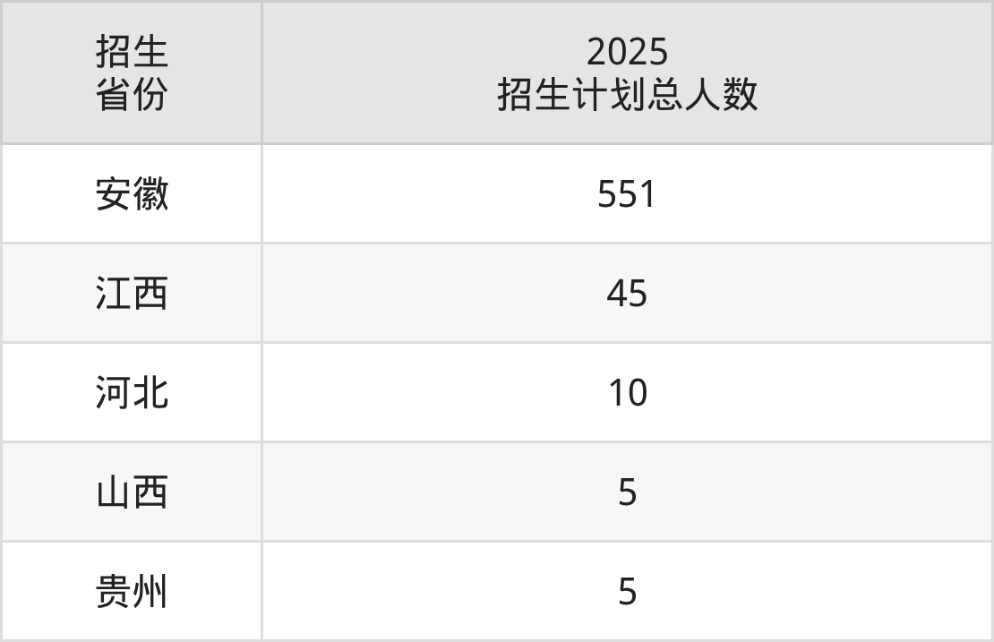 2025年安徽邮电职业技术学院面向全国5个省市开展专科招生;招生专业共11个,招生人数共616人。2025年在安徽省招生计划总人数是551人,其中,安徽邮电职业技术学院在安徽省招生人数最多的是城市轨道交通通信信号技术。安徽邮电职业技术学院在各省具体招生人数情况如下表。