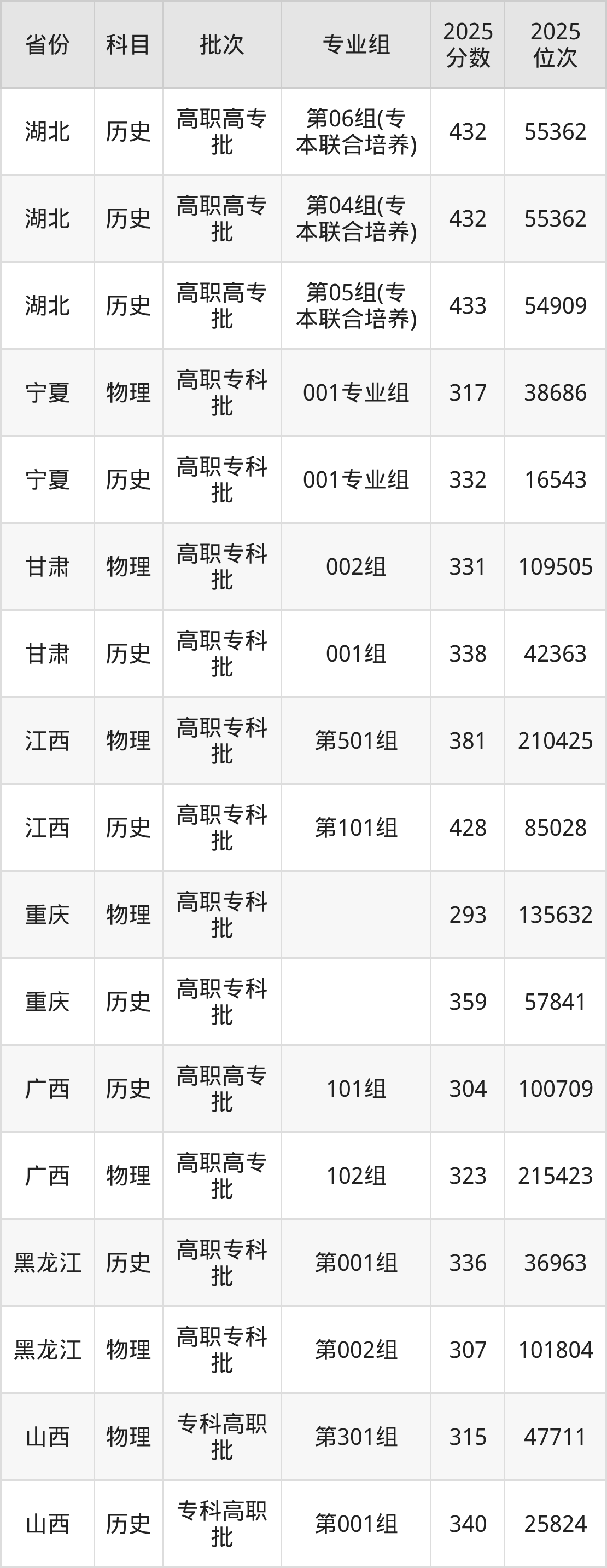 湖北城市建设职业技术学院第03组(乡村振兴):2025年投档录取最低分为320分,录取最低位次为108295名。