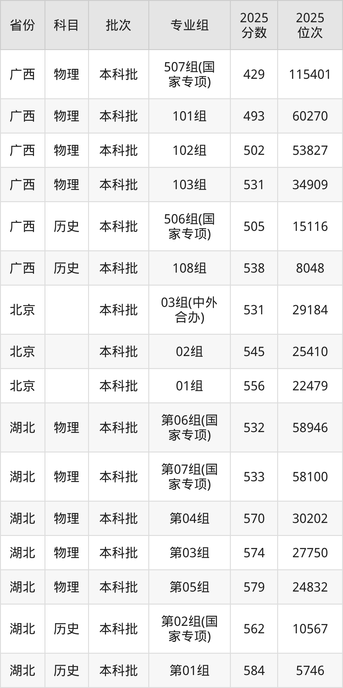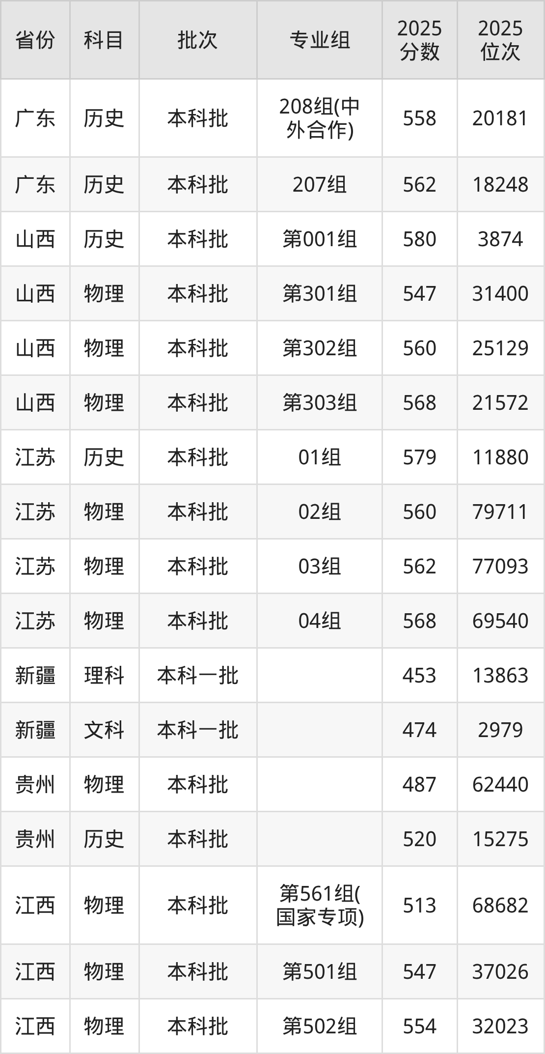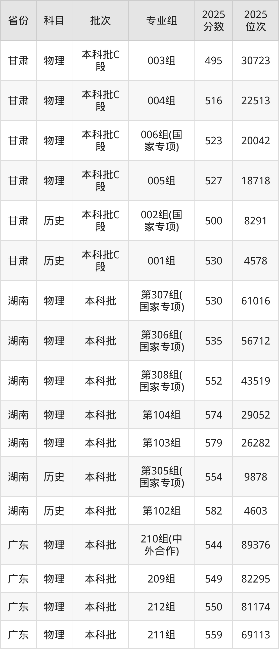 普通类本科物理类最低548分,本科历史类最低561分