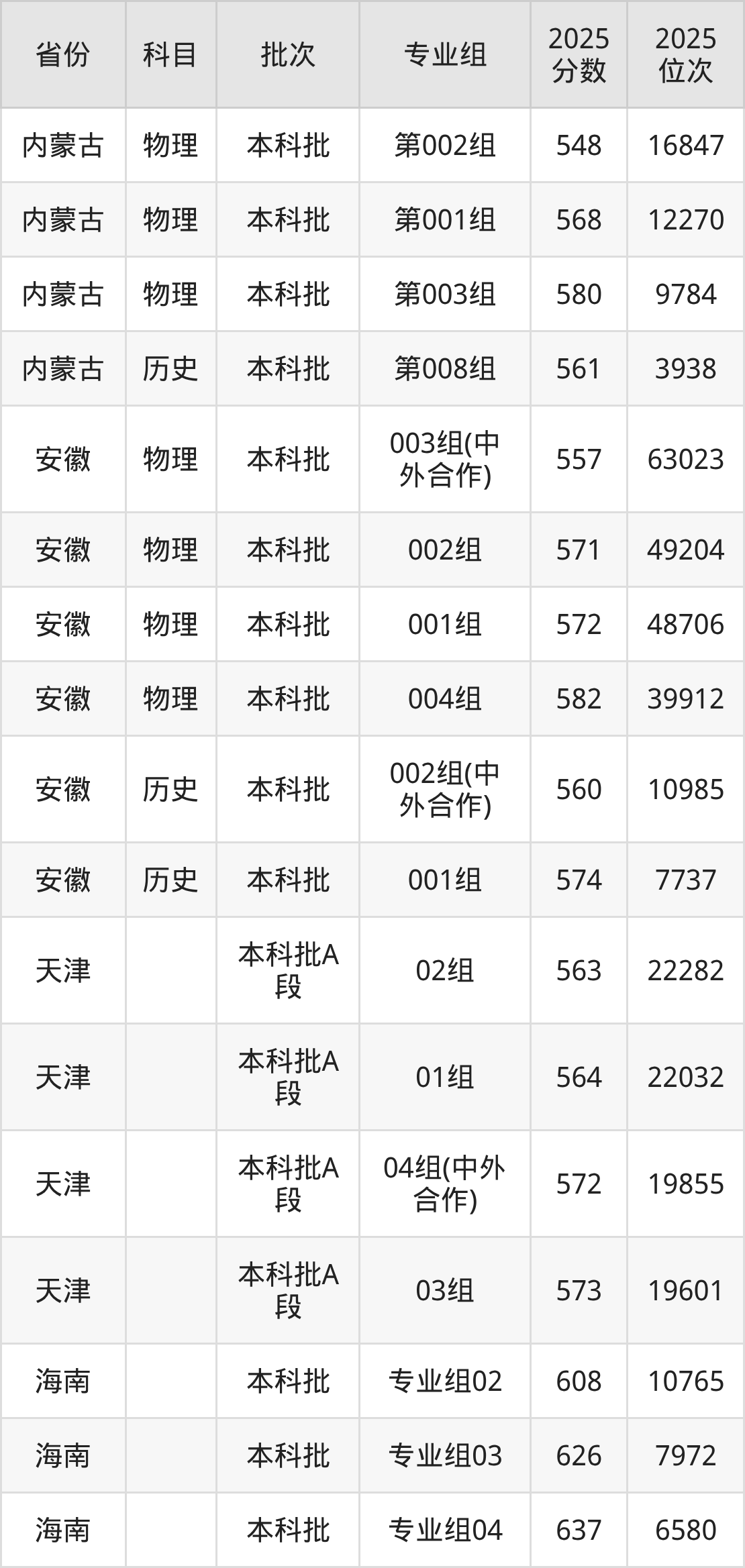 下面是2025年天津财经大学全国录取分数线一览表,请查阅。