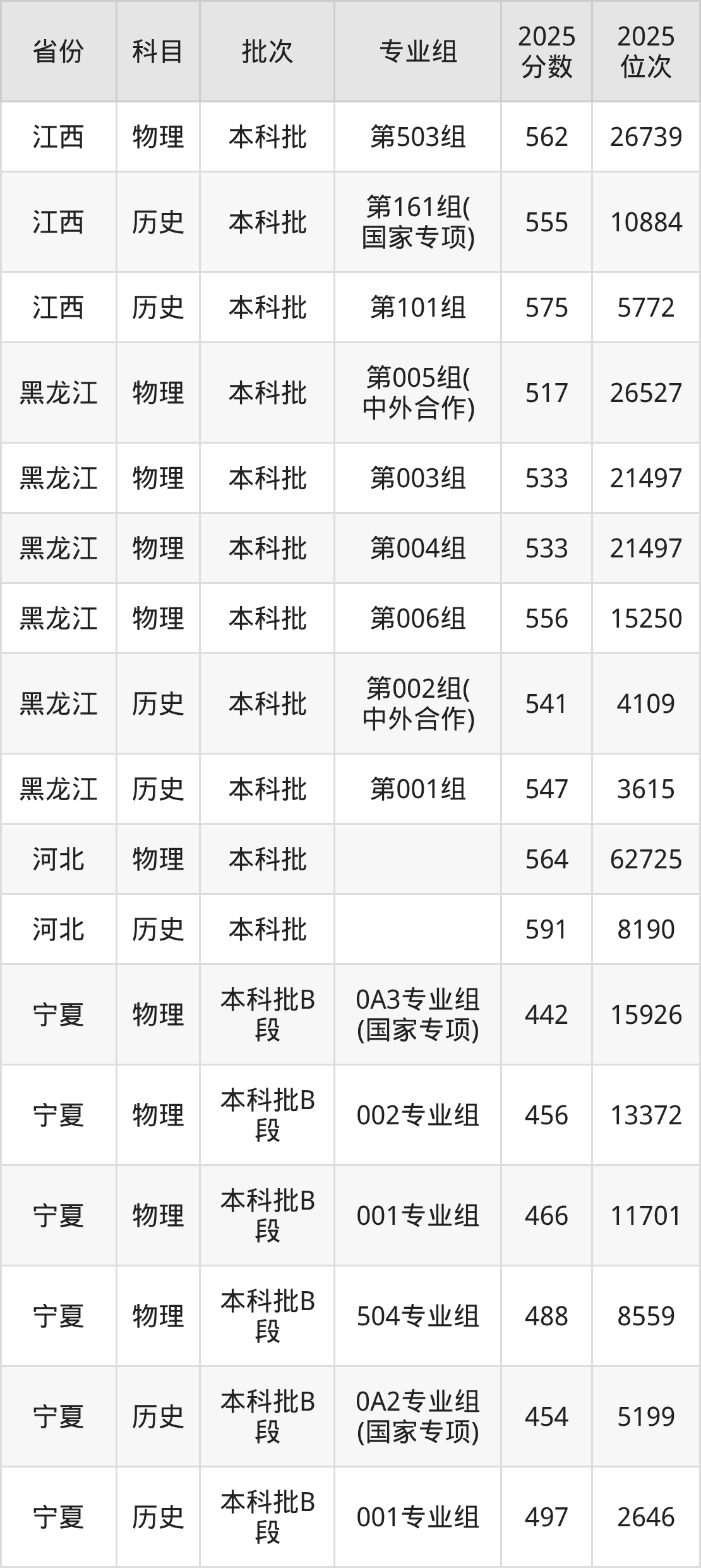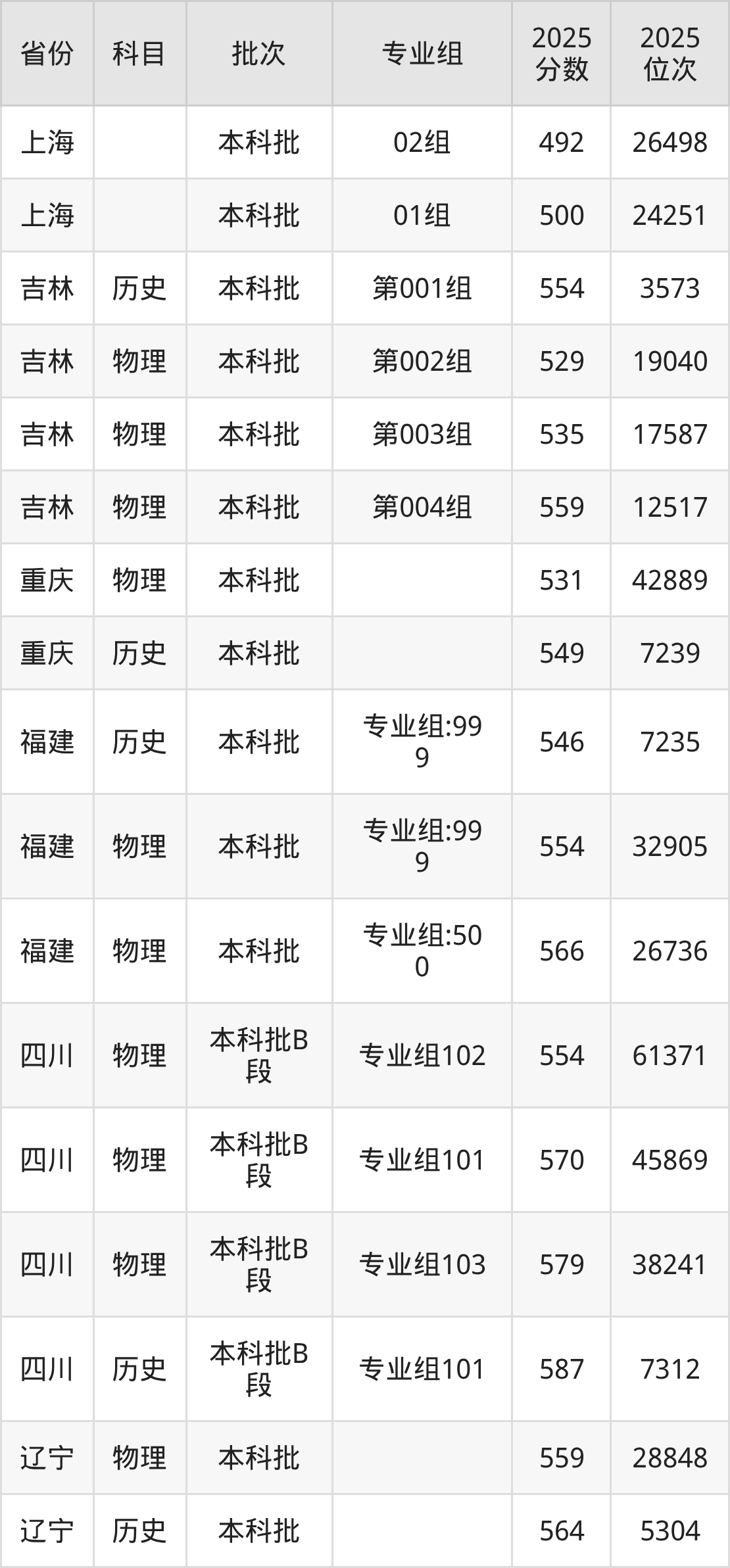 普通类本科物理类最低557分,本科历史类最低560分