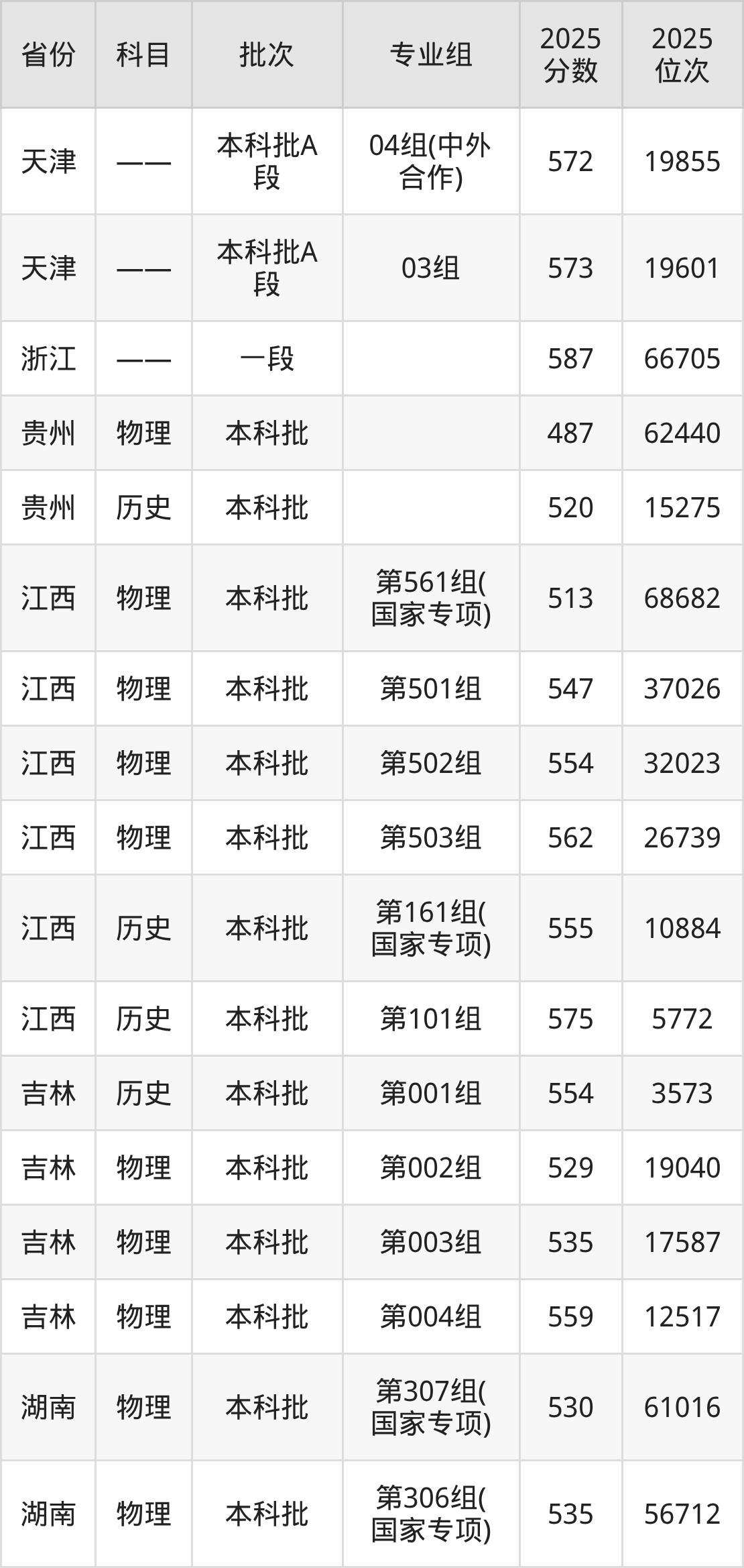 天津财经大学第003组:2025年投档录取最低分为535分,录取最低位次为17587名。