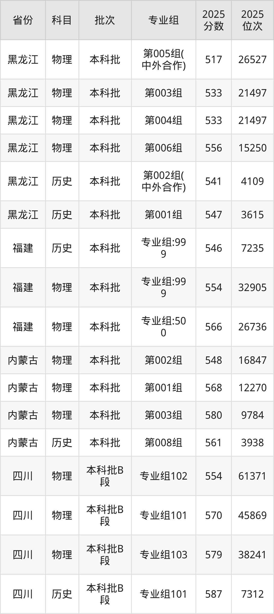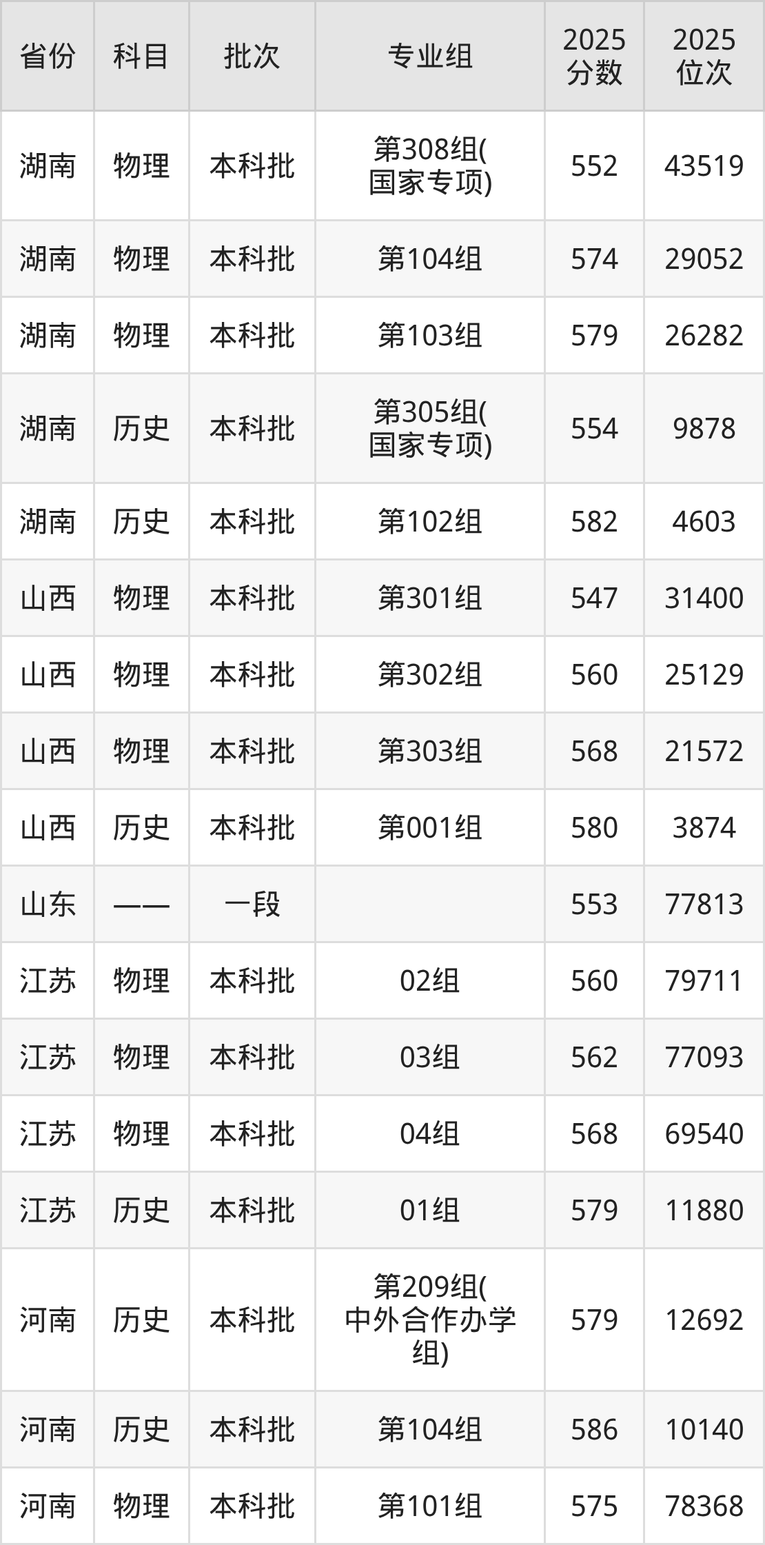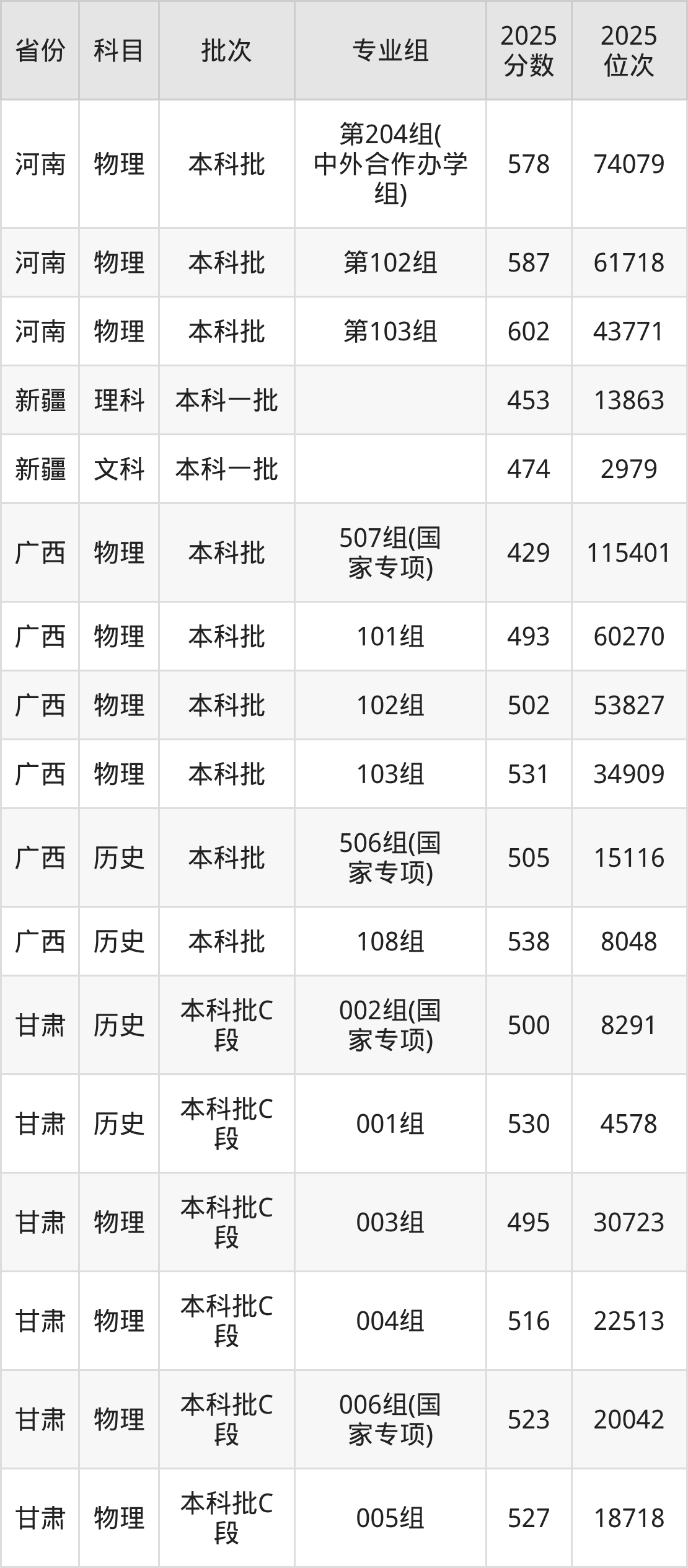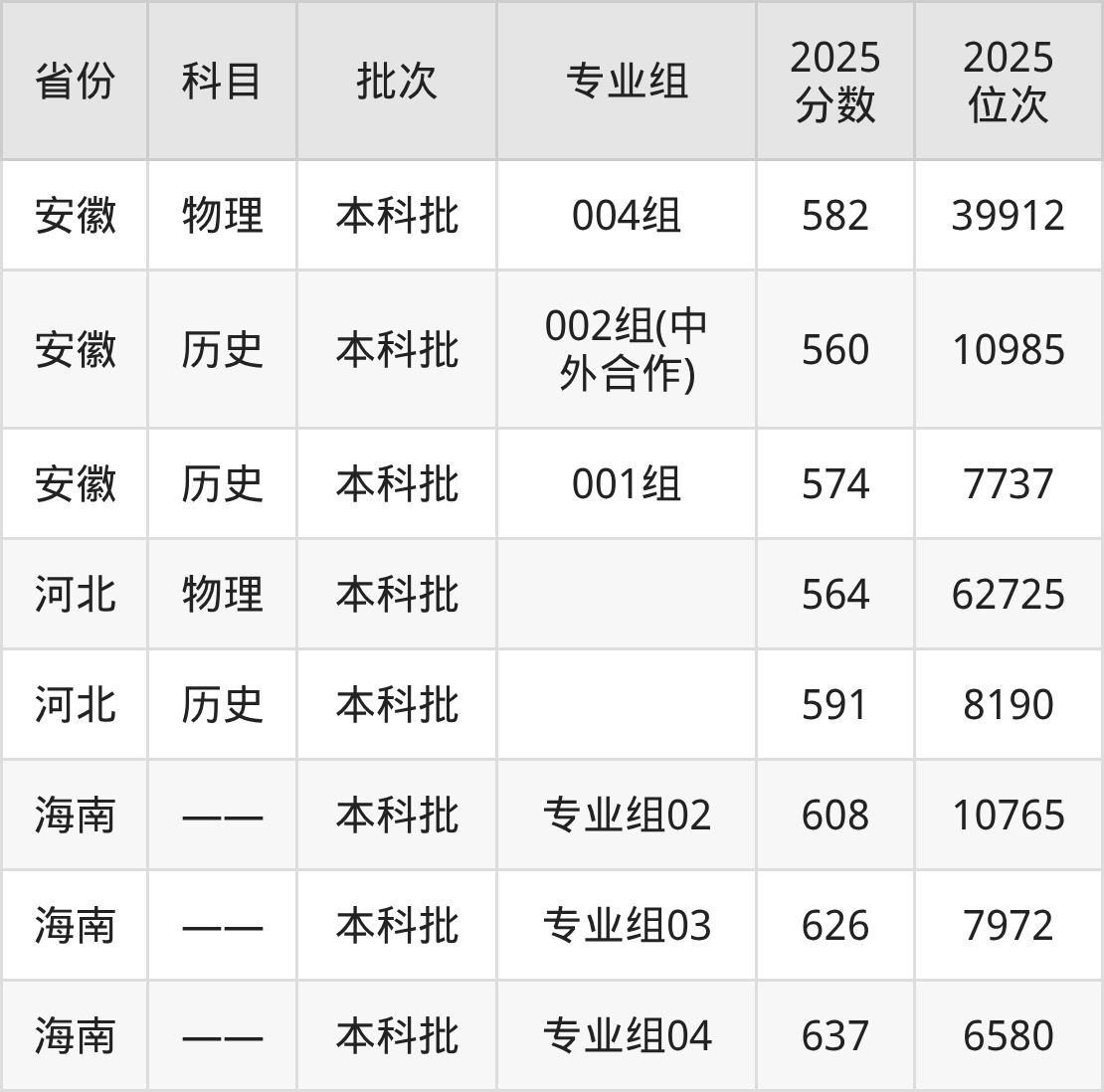 2025年投档录取最低分为564分,录取最低位次为62725名。