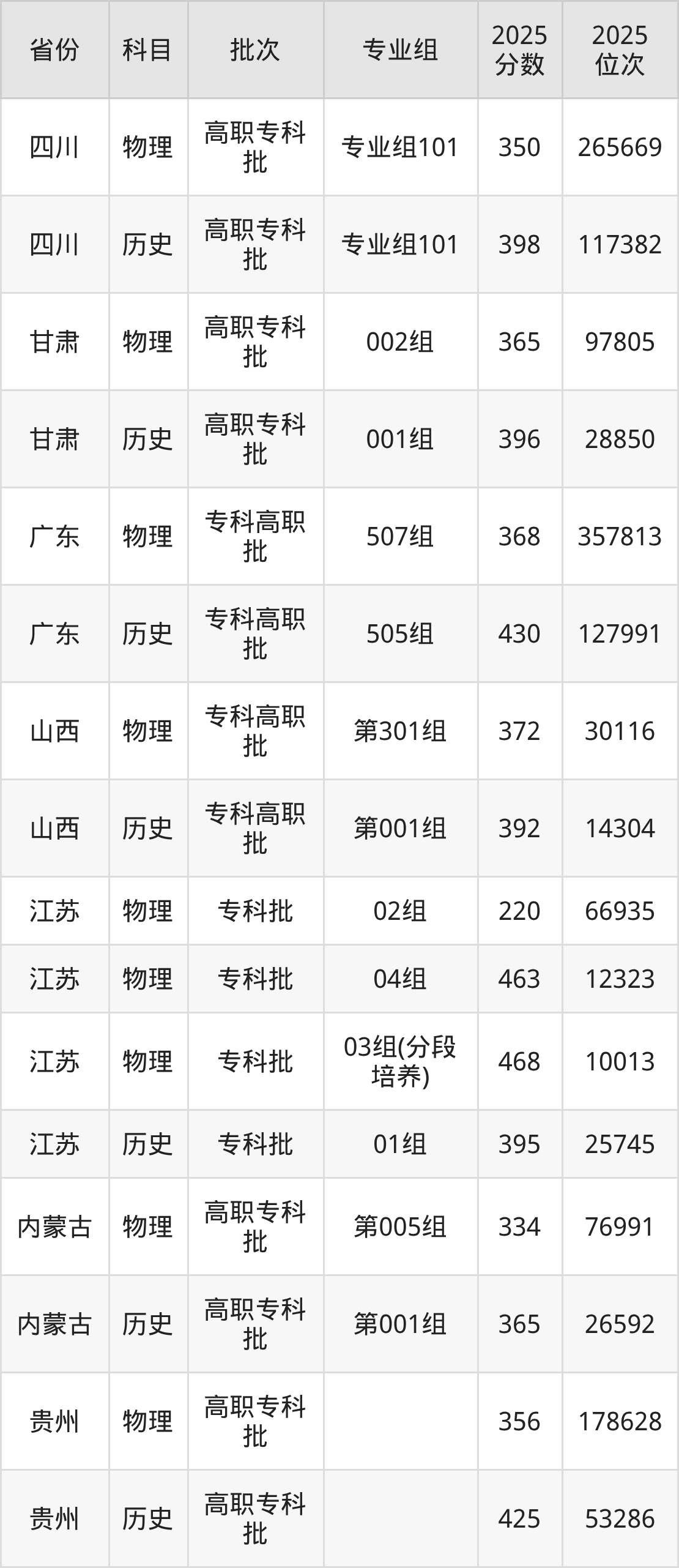 泰州职业技术学院002专业组:2025年投档录取最低分为365分,录取最低位次为97805名。