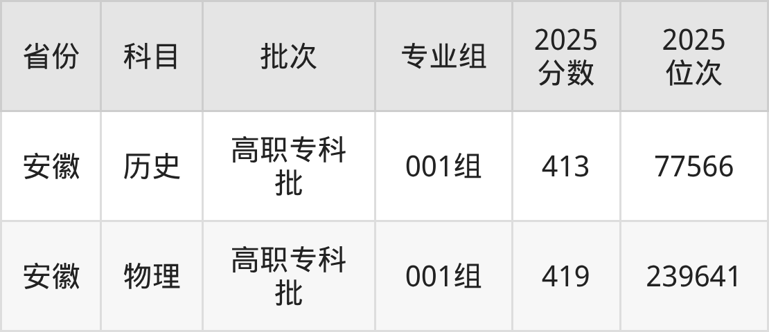 泰州职业技术学院001组:2025年投档录取最低分为419分,录取最低位次为239641名。