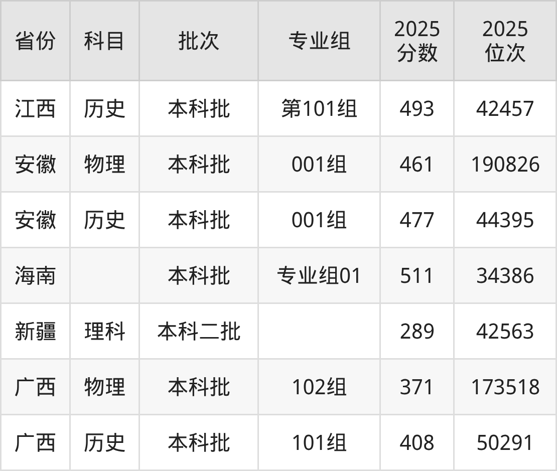 2025年投档录取最低分为425分,录取最低位次为103219名。