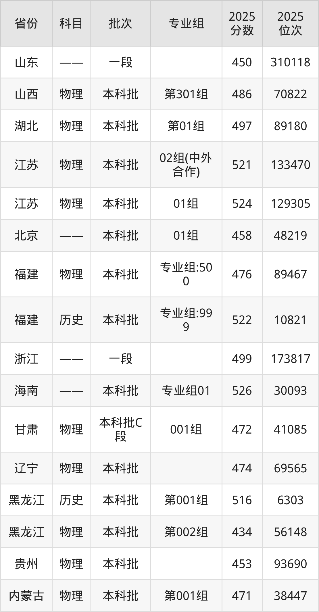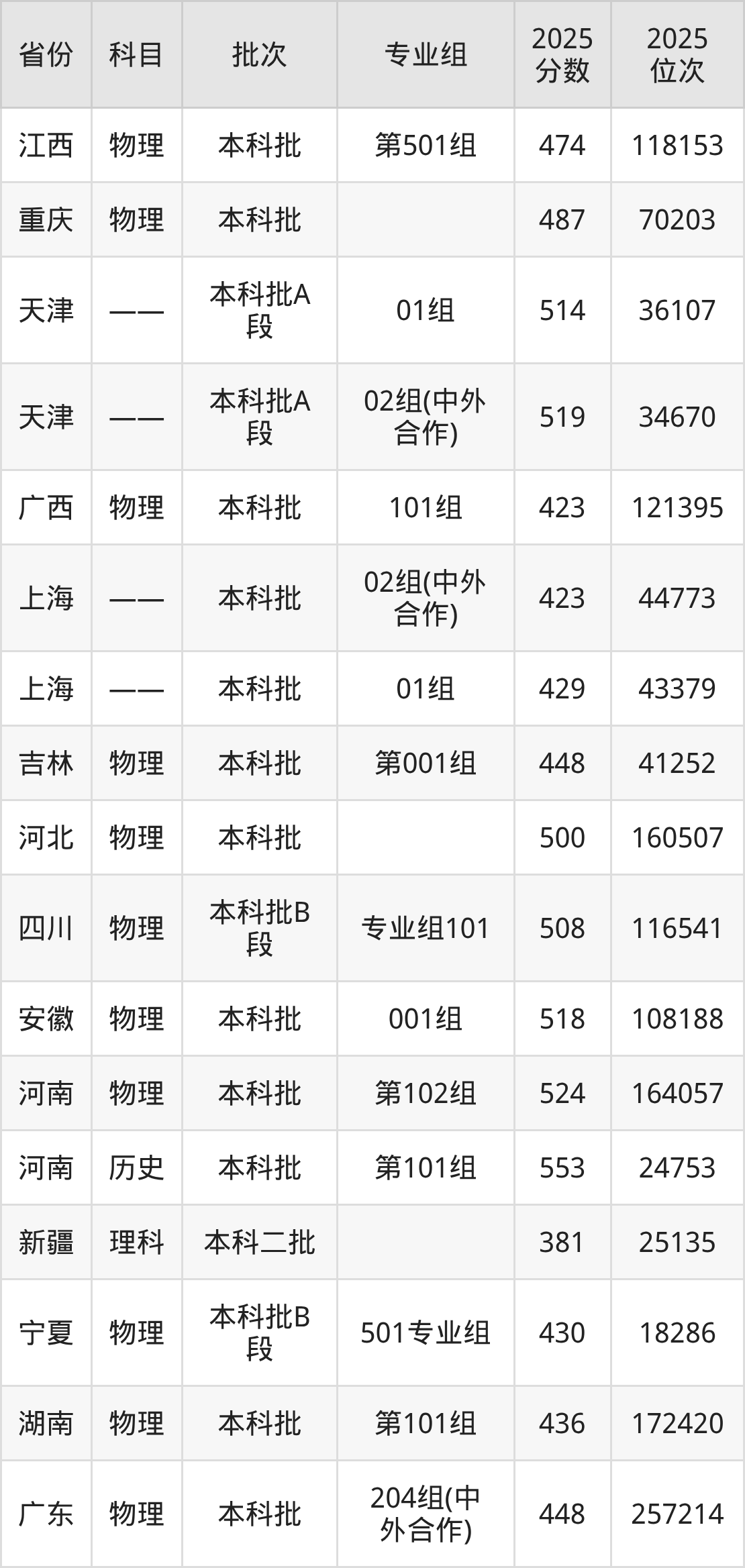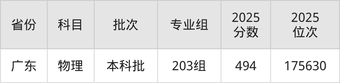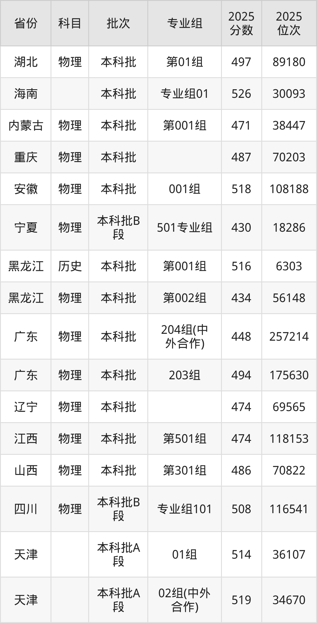 2025年在本科物理类进行招生,各专业组分数线详情如下: