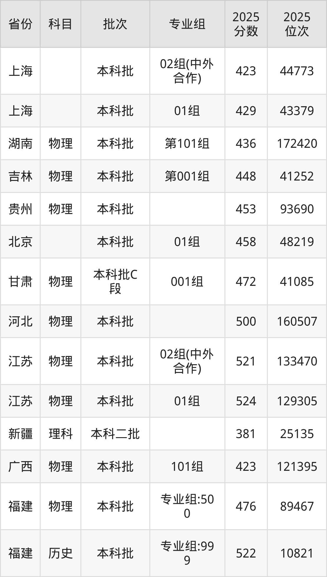 食品科学与工程(中外合作办学)(英国皇家农业大学):2025年投档录取最低分为510分。
