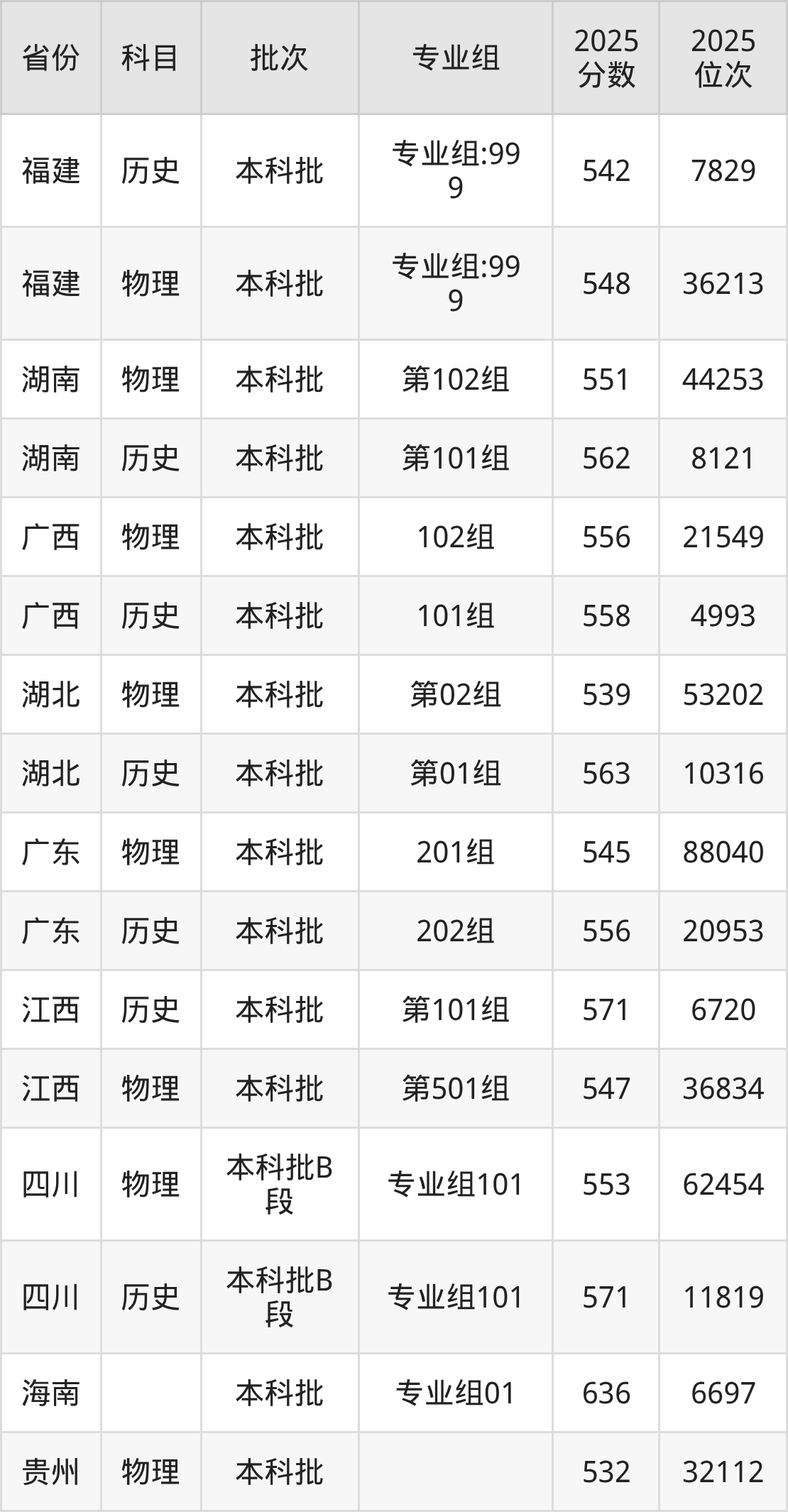 2025年投档录取最低分为532分,录取最低位次为32112名。
