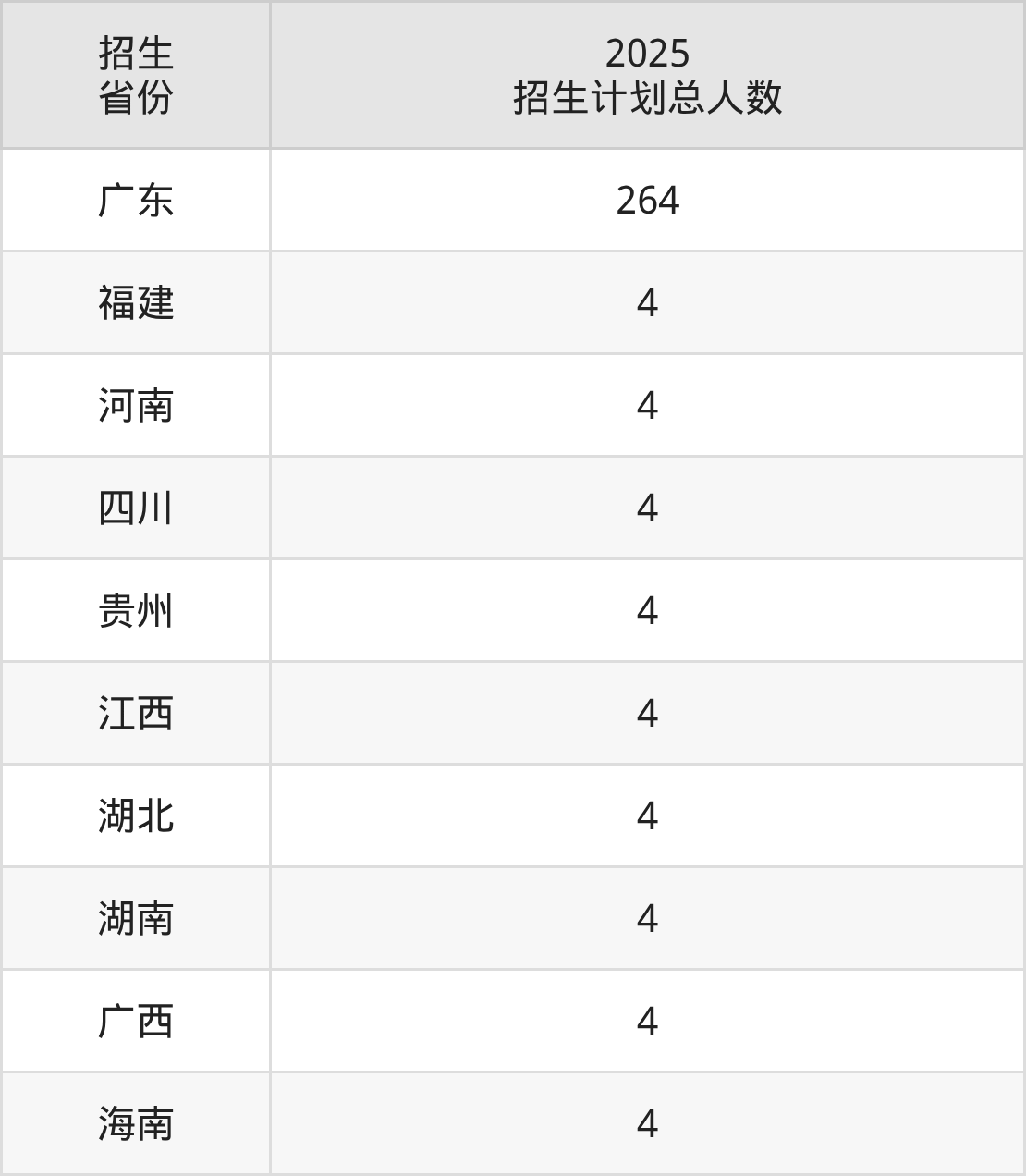 2025年广东警官学院面向全国10个省市开展本科招生;招生专业共3个,招生人数共300人。2025年在广东省招生计划总人数是264人,其中,广东警官学院在广东省招生人数最多的是法学。广东警官学院在各省具体招生人数情况如下表。