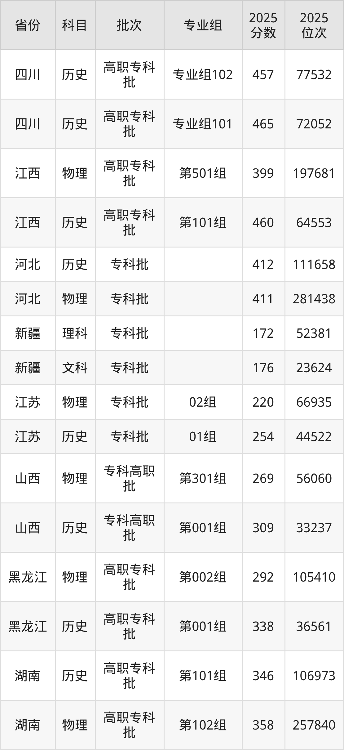 下面是2025年四川职业技术学院全国录取分数线一览表,请查阅。