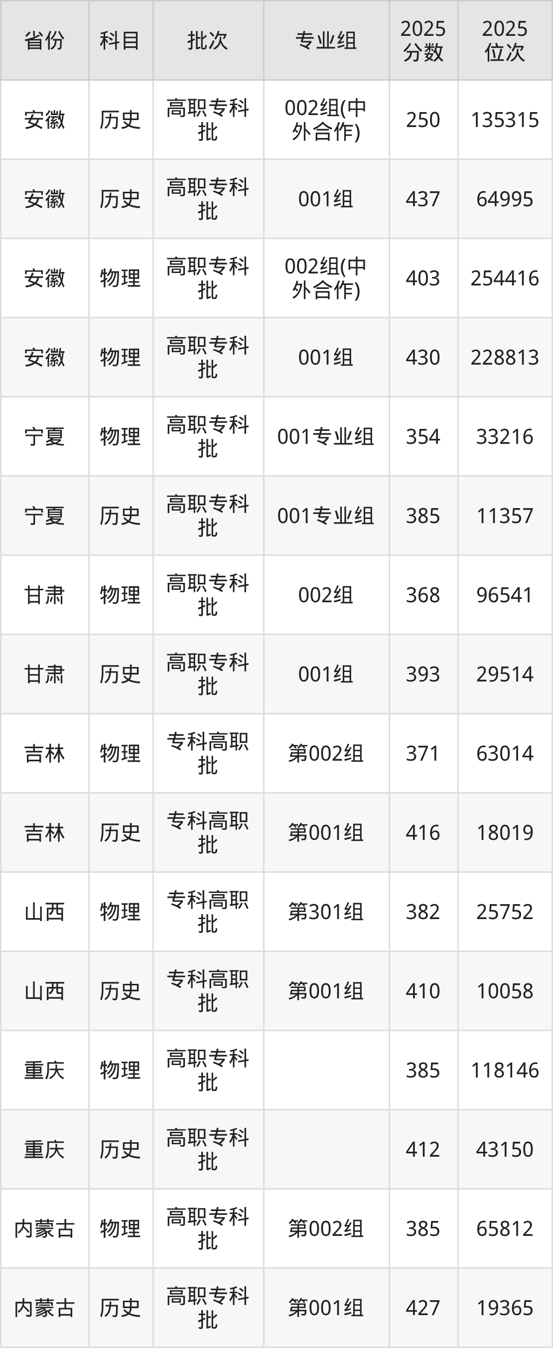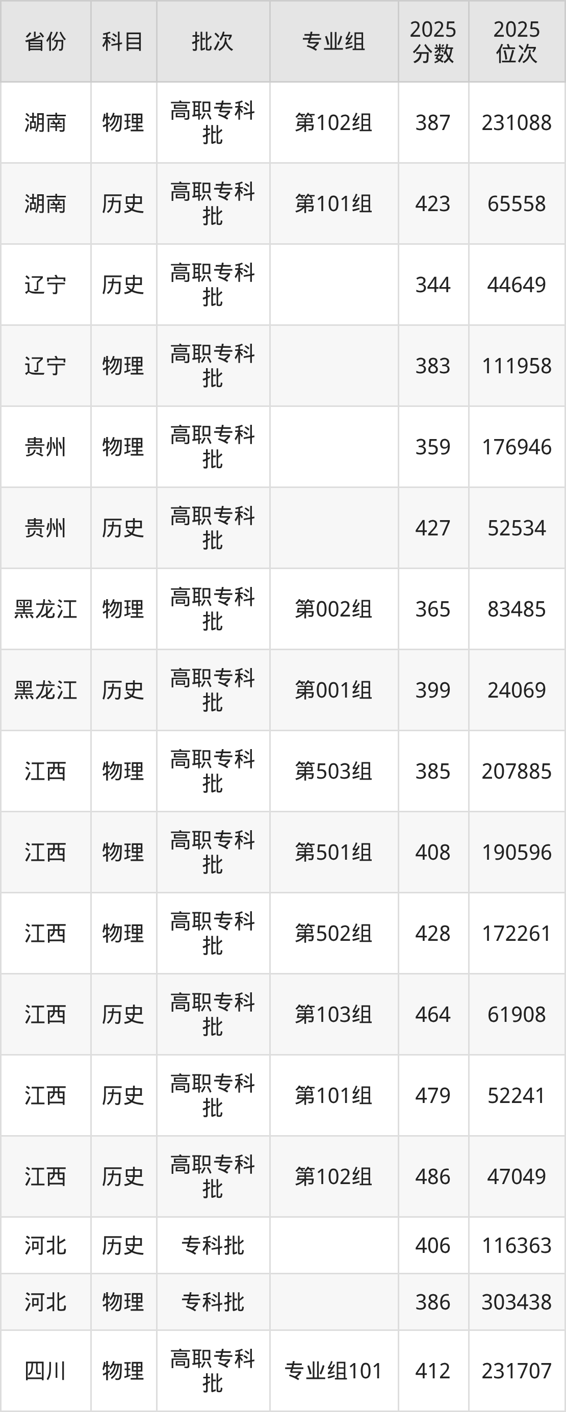 2025年投档录取最低分为383分,录取最低位次为111958名。