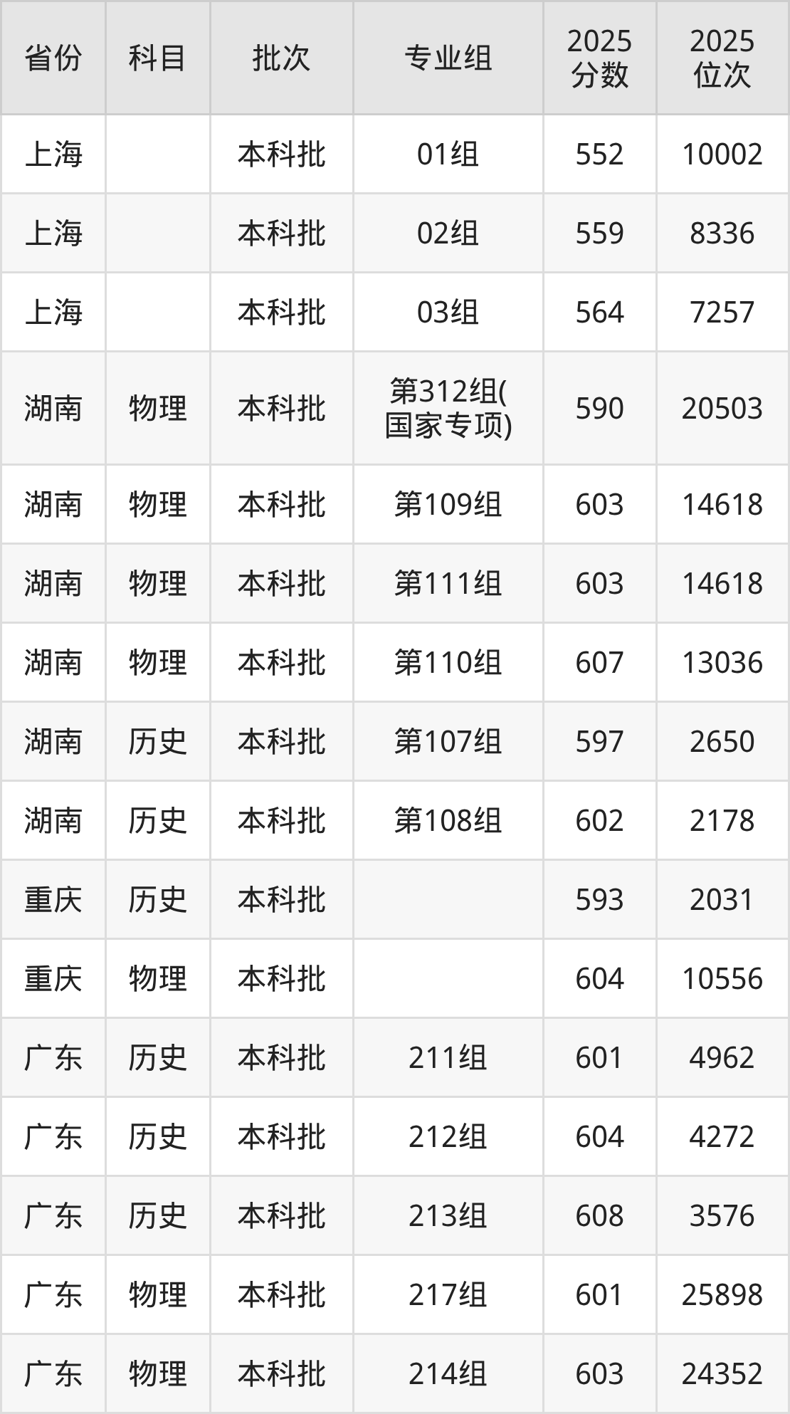 2025年投档录取最低分为587分,录取最低位次为10129名。