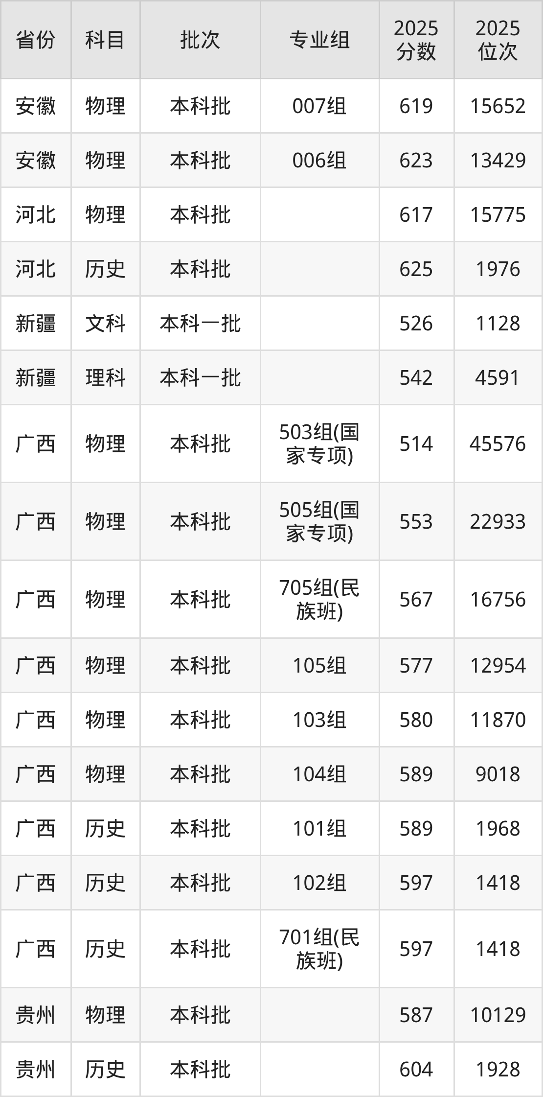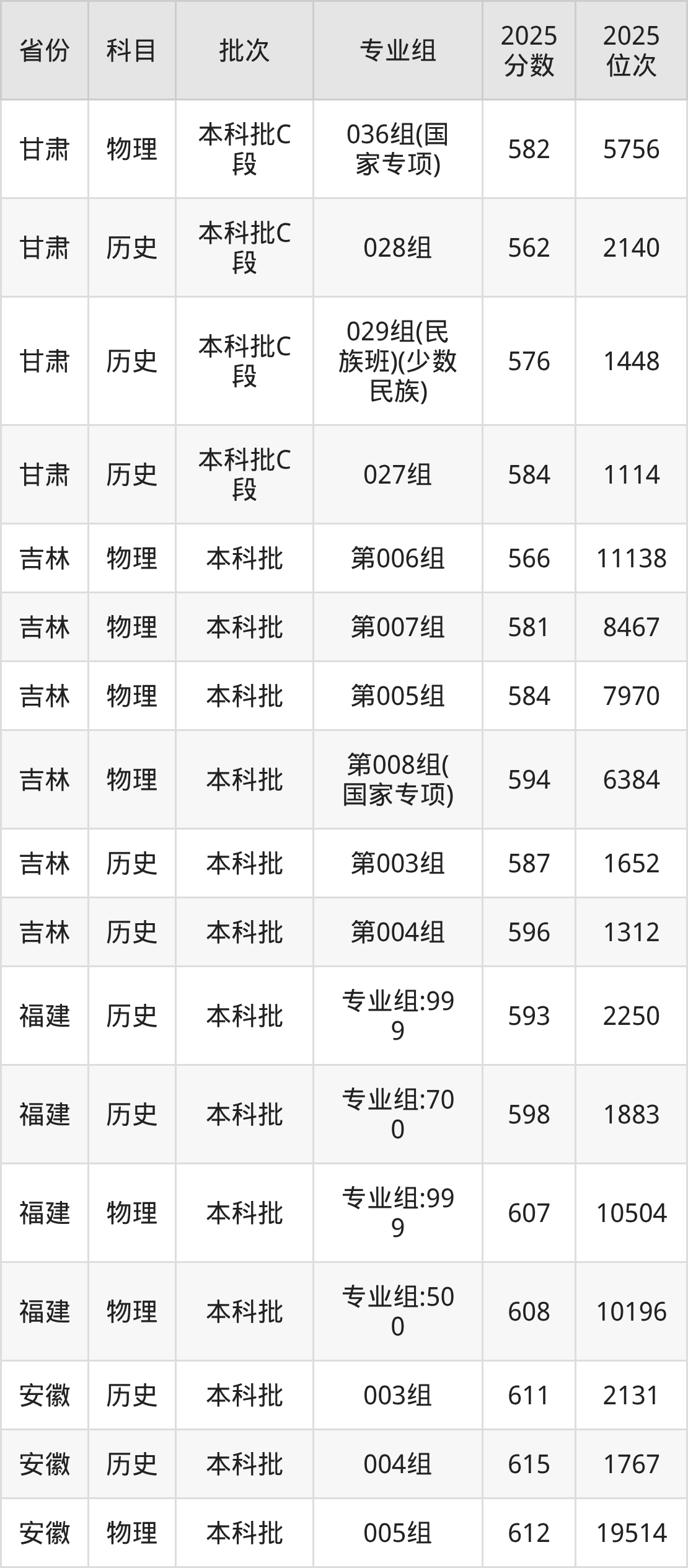 兰州大学第005组:2025年投档录取最低分为584分,录取最低位次为7970名。