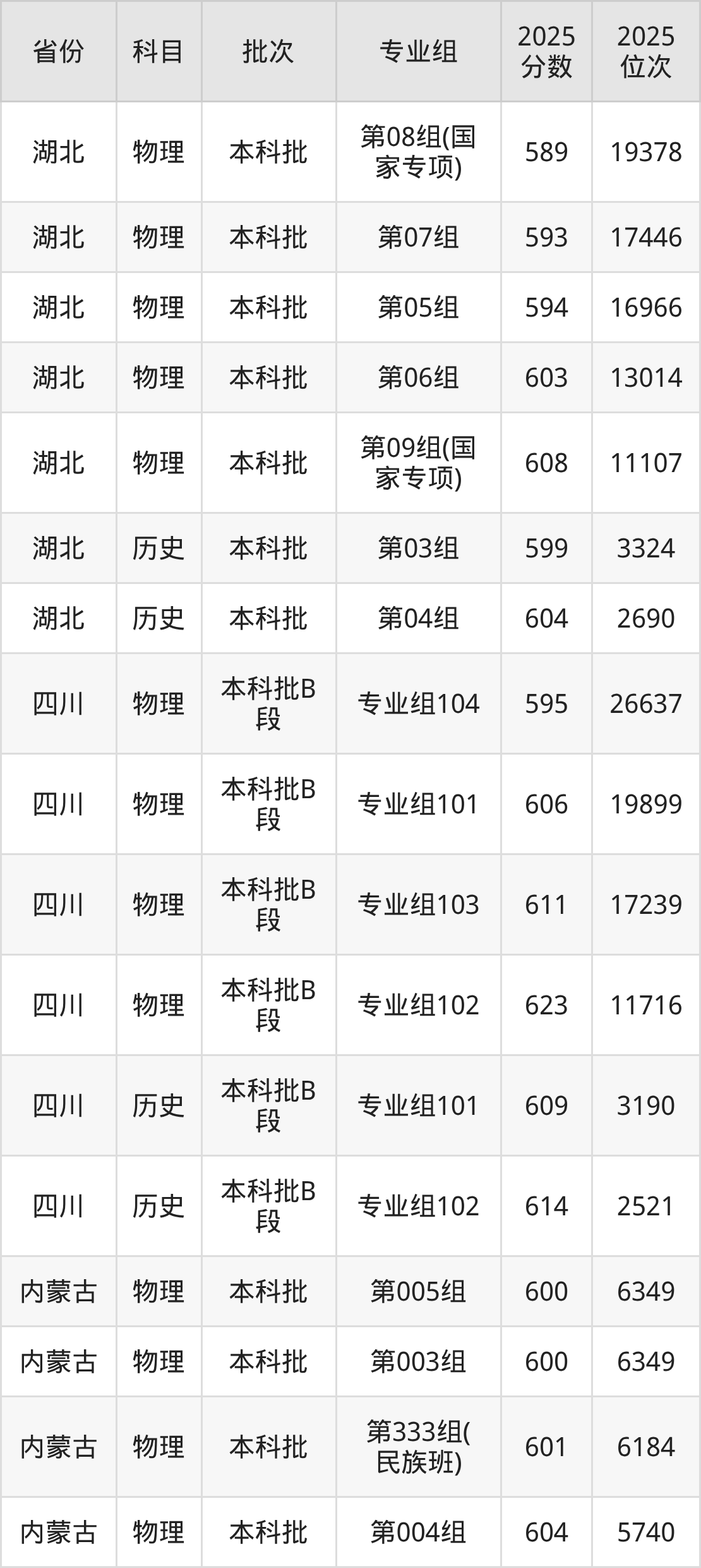 兰州大学第09组(国家专项计划):2025年投档录取最低分为608分,录取最低位次为11107名。