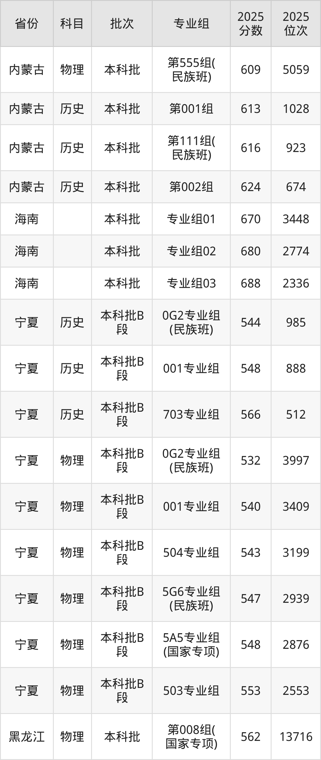 兰州大学705组(民族班):2025年投档录取最低分为567分,录取最低位次为16756名。